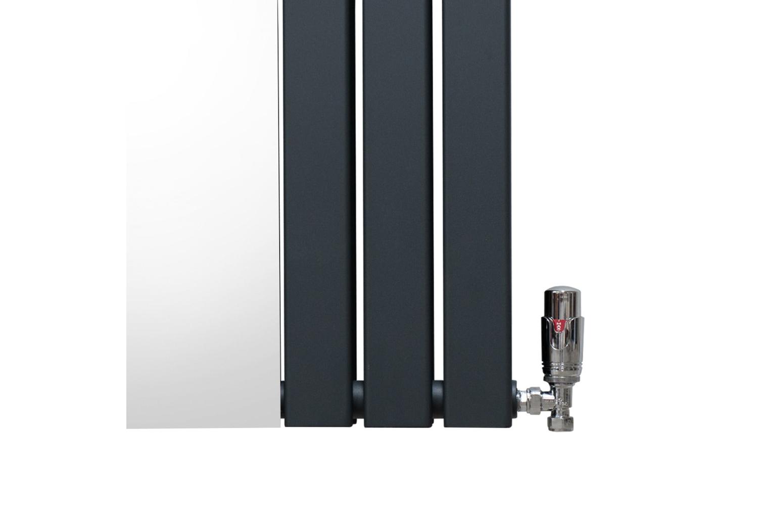 The MONSTERSHOP 10870 Flat Mirror Radiator set includes secure brackets, a fixing kit, a flexible cleaning brush, and a thermostatic valve set. Providing reliable, efficient heat output and boasting an avant-garde design, this radiator is a perfect addition to any modern home!