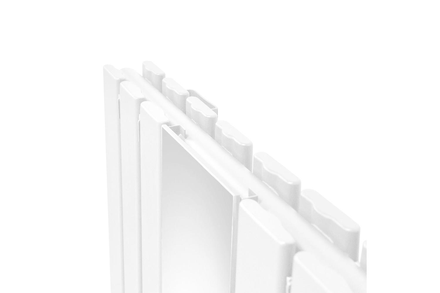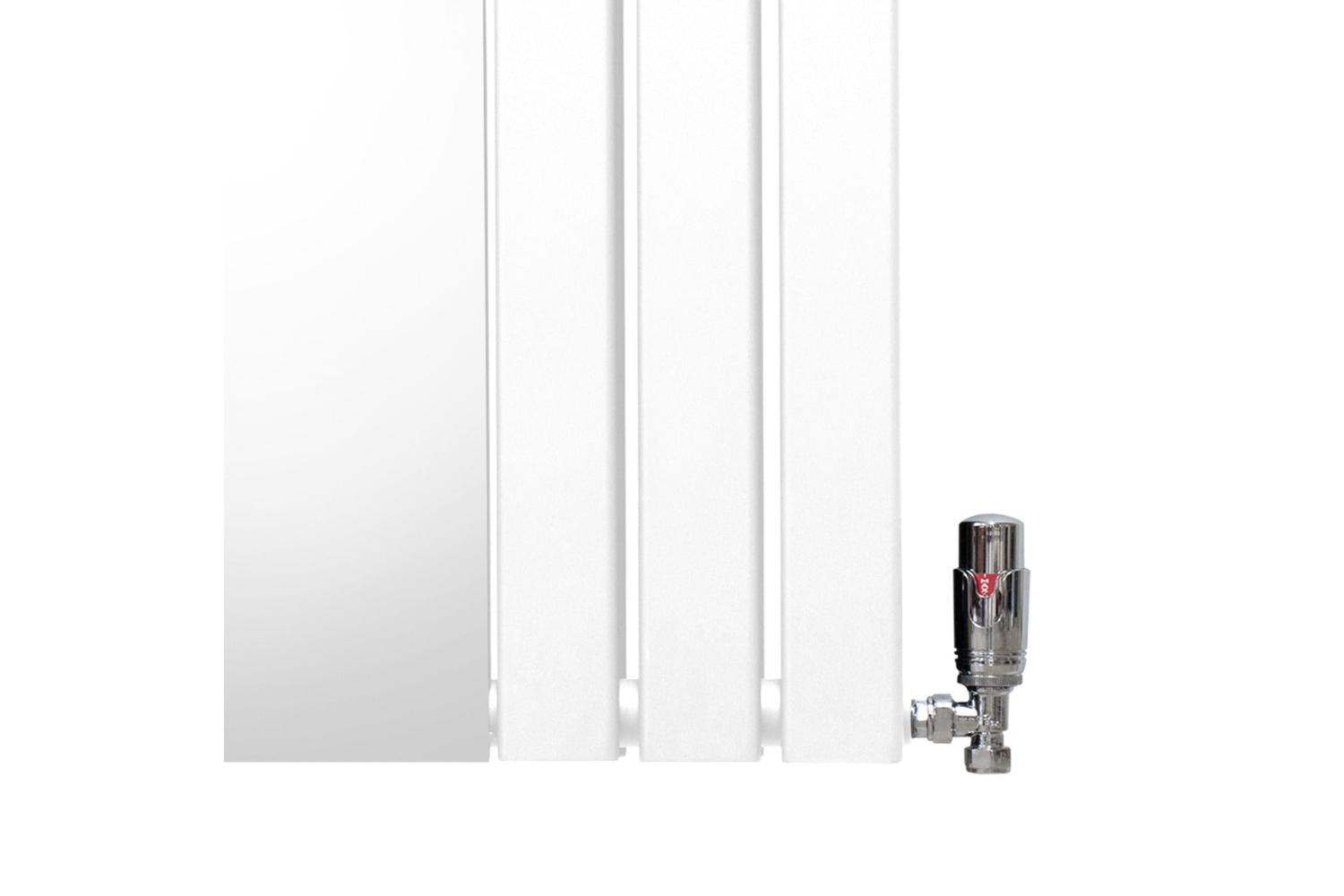 Crafted from premium 1.5mm carbon steel, this vertical flat panel radiator integrates a sleek mirror and a set of chrome thermostatic valves. Conveying not only aesthetic appeal but also impressive durability, this product offers seamless integration into your home. Priding itself on a triple layered powder coating that enhances the product's overall durability, the MONSTERSHOP 10871 checks all the boxes from its superior resistance against wear, preserving a pristine appearance, to backing each product with a generous 15-year guarantee.