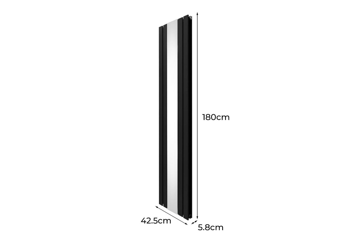 At an impressive height of 1800mm and a width of 425mm, this sleek radiator smoothly blends into different spaces, offering flexible installation options with the secure brackets included in the package. The stunning black finish enriches any room, creating an striking focal point and enhancing the ambiance with its bold presence.