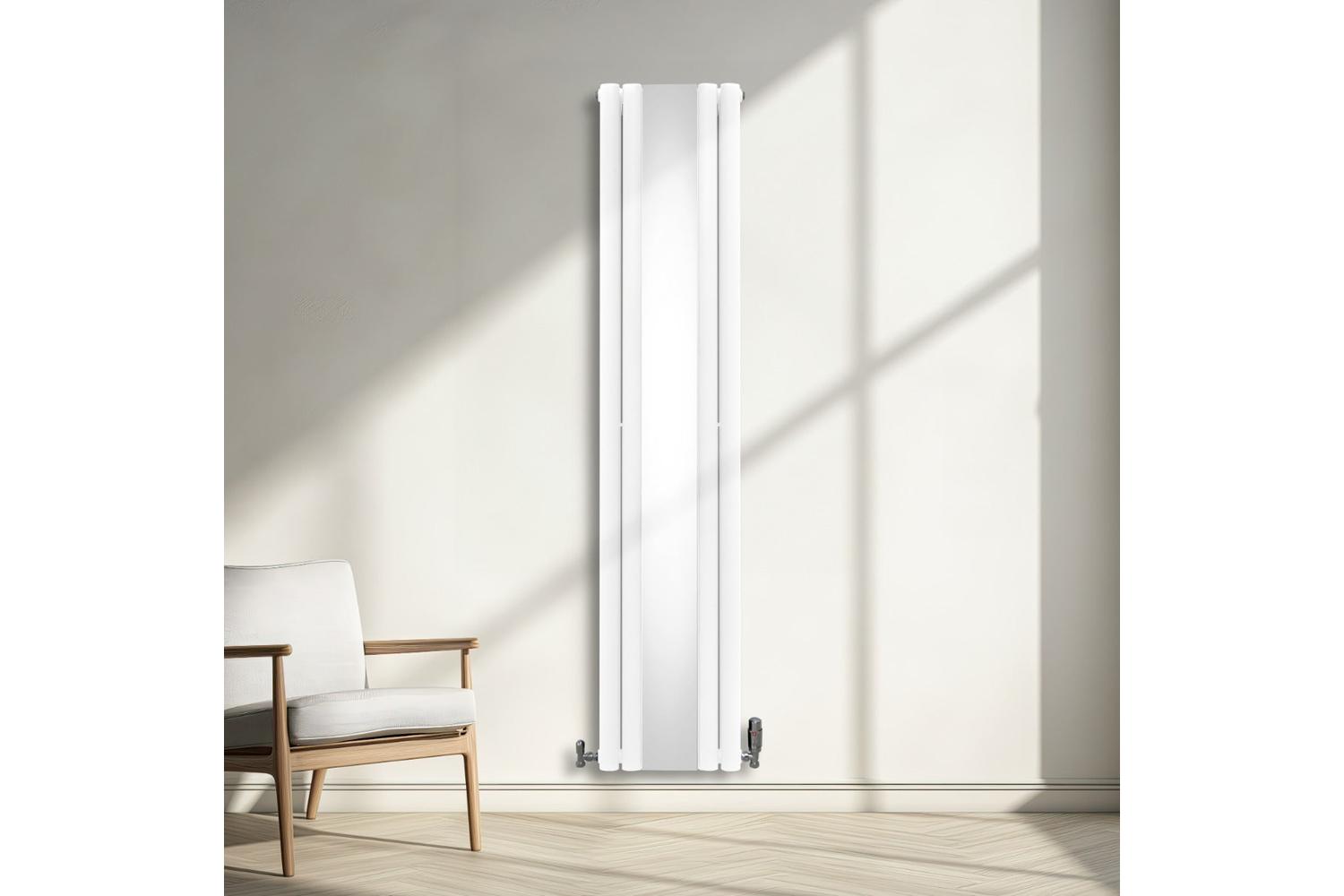 Introducing the MONSTERSHOP 212999 - DIY's new rage, a stunning blend of functionality and sophistication. Our vertical oval panel radiator in white, studded with a sleek central mirror, demonstrates timeless elegance coupled with cutting-edge heating technology.