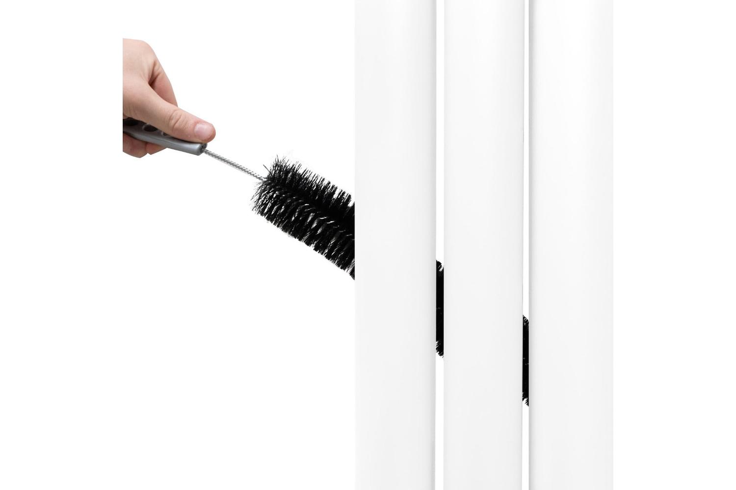 Our radiator's pristine white appeal gets maximized with sturdy triple-layered powder coating, enhancing resistance to wear while ensuring the radiator maintains its fresh look for years. Enjoy peace of mind with our mirror radiator; it's certified with BS EN442 certification, wrapped with a 15-year quality guarantee. Additionally, the easy-to-use flexible cleaning brush facilitates effortless maintenance, upkeeping the product's allure.