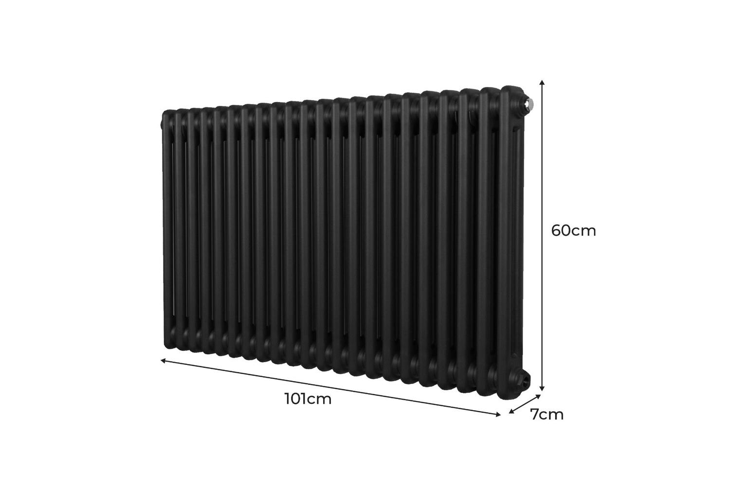 The MONSTERSHOP 213057 is a top-tier, traditional 2 column radiator designed to transform your home's heating system. Standing at 600mm in height, deep in lustrous black, and reaching a length of 1012mm, its blend of sophisticated visual appeal and high-performance warmth features make it an ideal addition not just as functional gear but as a stylish focal point in your living space.