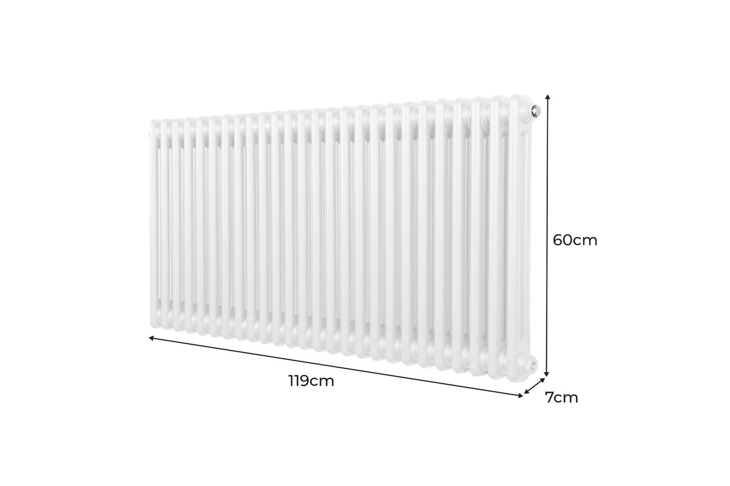 Constructed using premium 1.5mm carbon steel, this robust two-column horizontal radiator comes in a sleek white finish, enhancing the ambience of any room. Boasting impressive dimensions of 600mm in height and 1192mm in width, this radiator offers unrivalled versatility, efficiently heating various spaces while seamlessly blending in with your existing décor.