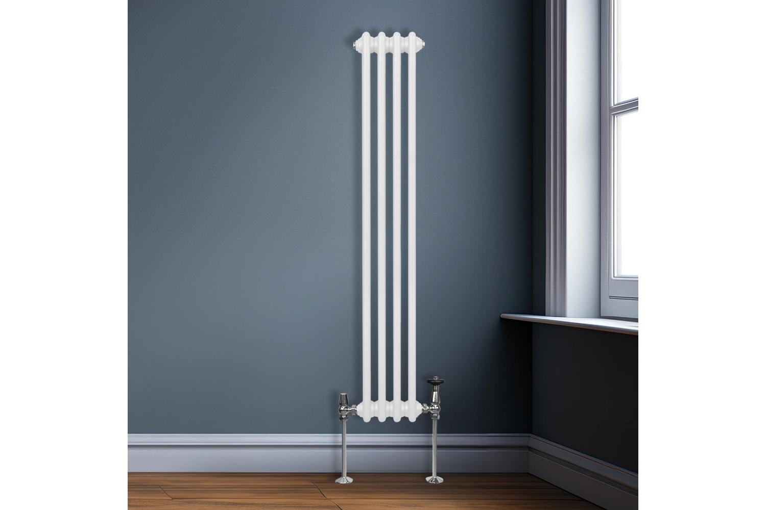 The radiator parades user-friendly functionality with its standard 0.5" BSP inlet/outlet compatibility. This boosts your freedom of choices, enabling you to select valves that match your specific requirements. Flaunt your tasteful preference and get customised heating solutions adjusted to ones needs with our traditional style 2 column radiator in white!