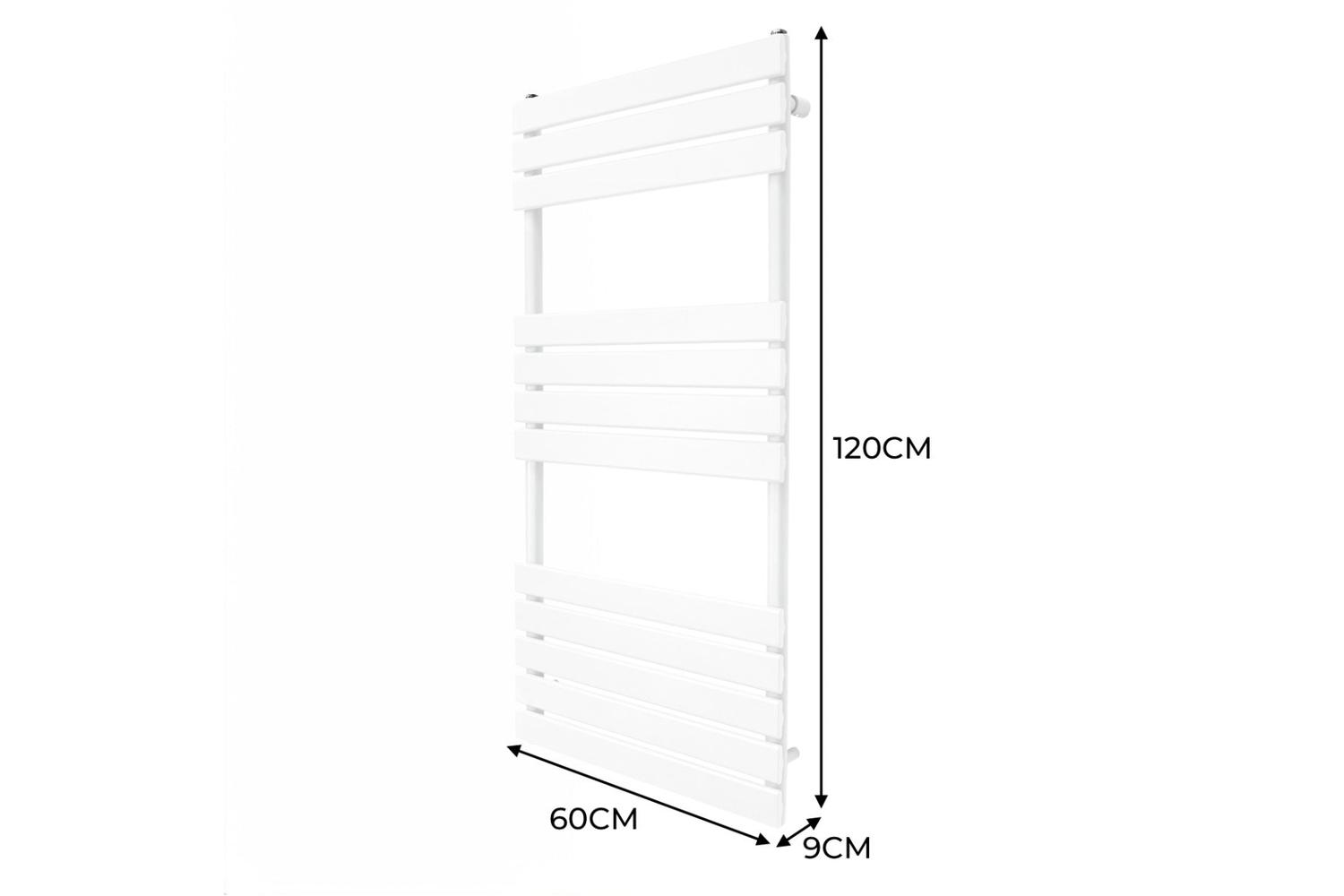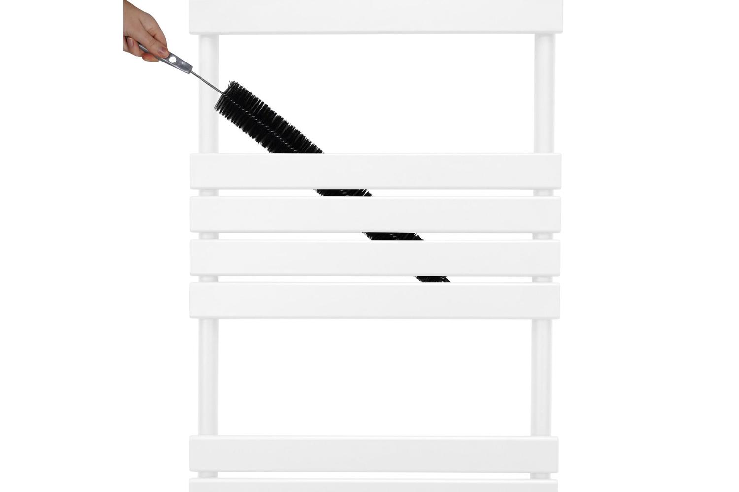 Engineered for advanced performance, these radiators feature 12 robust steel panels each measuring 60mm x 600mm, assuring a vigorous heat outflow that maintains a cosy bathroom environment at all times. The triple-layered powder coating amplifies its durability whilst resisting against wear and tear. Further, maintaining this heated towel rail is breezy with the inclusion of a complimentary cleaning brush.
