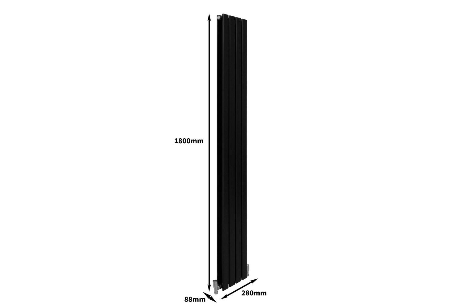 With a matt black finish that sleekly combines form and function, it promises contemporary charm that complements your interior style and adds a bold aesthetic feature. Sized perfectly at 1800mm in height and 280mm wide, these radiators fit comfortably in various spaces in your home or workspace.