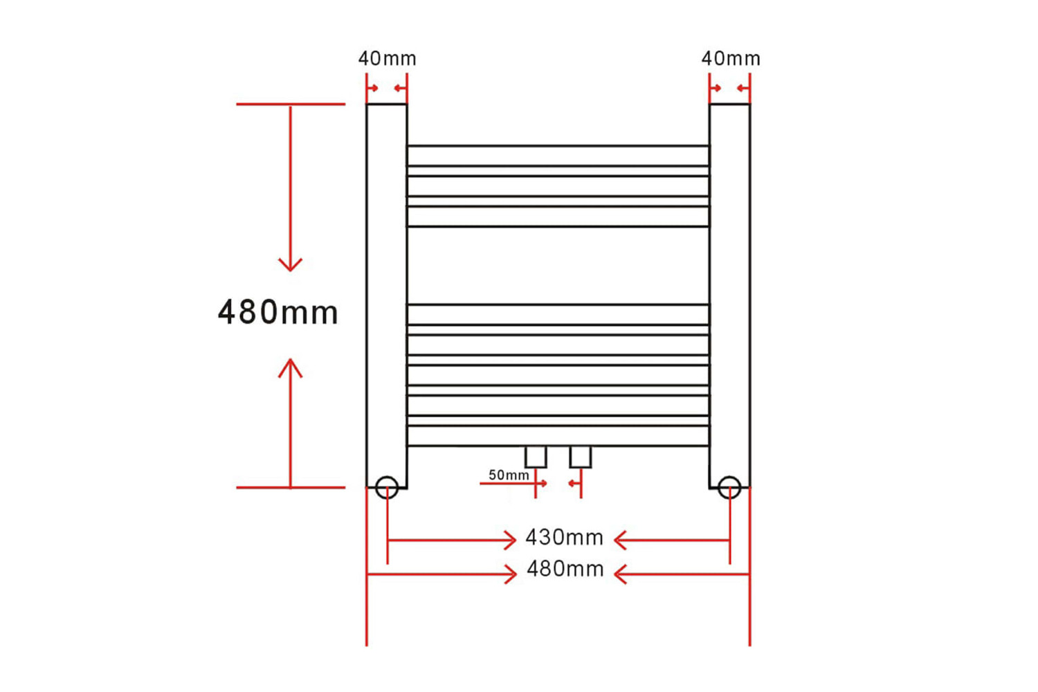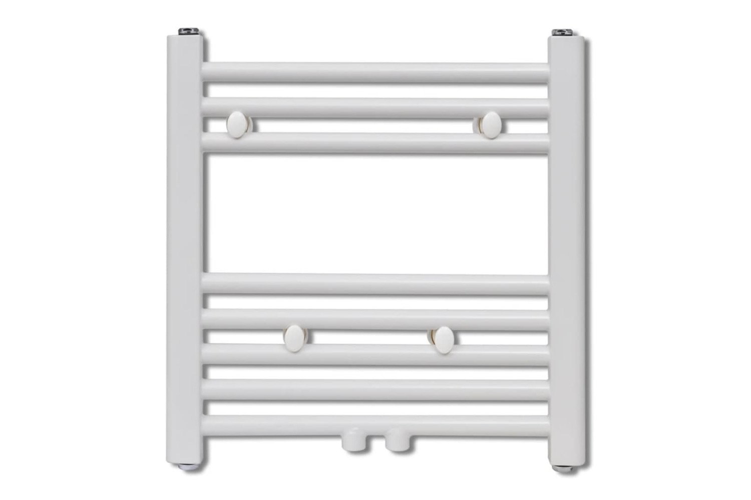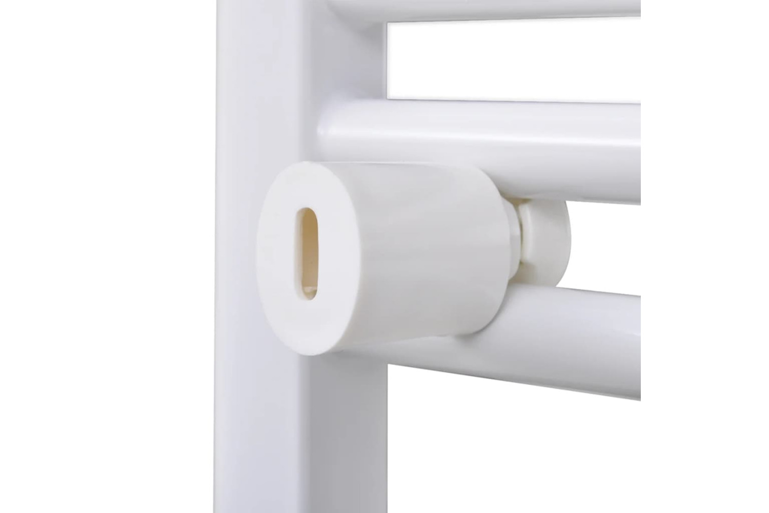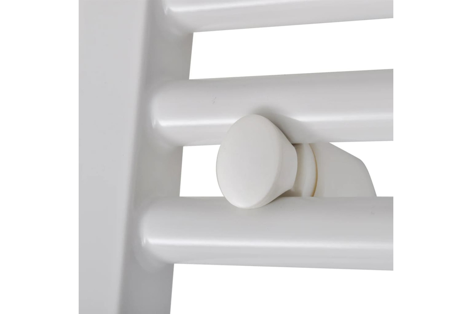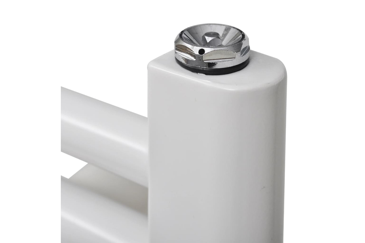 Thanks to the help of hot water circulation system, your towels will be dried in no time, which costs not electric bills. The towel warmer has 8 steel cross-bars of 22 mm in diameter and is painted in white. The cross-bars are extra-thick and subsequently produce a high heat output. The top and the bottom are both equipped with water inlets for an optimal water flow.