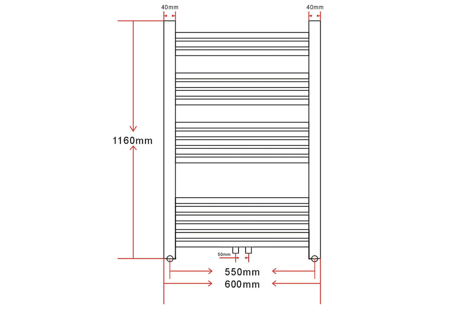 - Distance between pipe centres: 550 mm