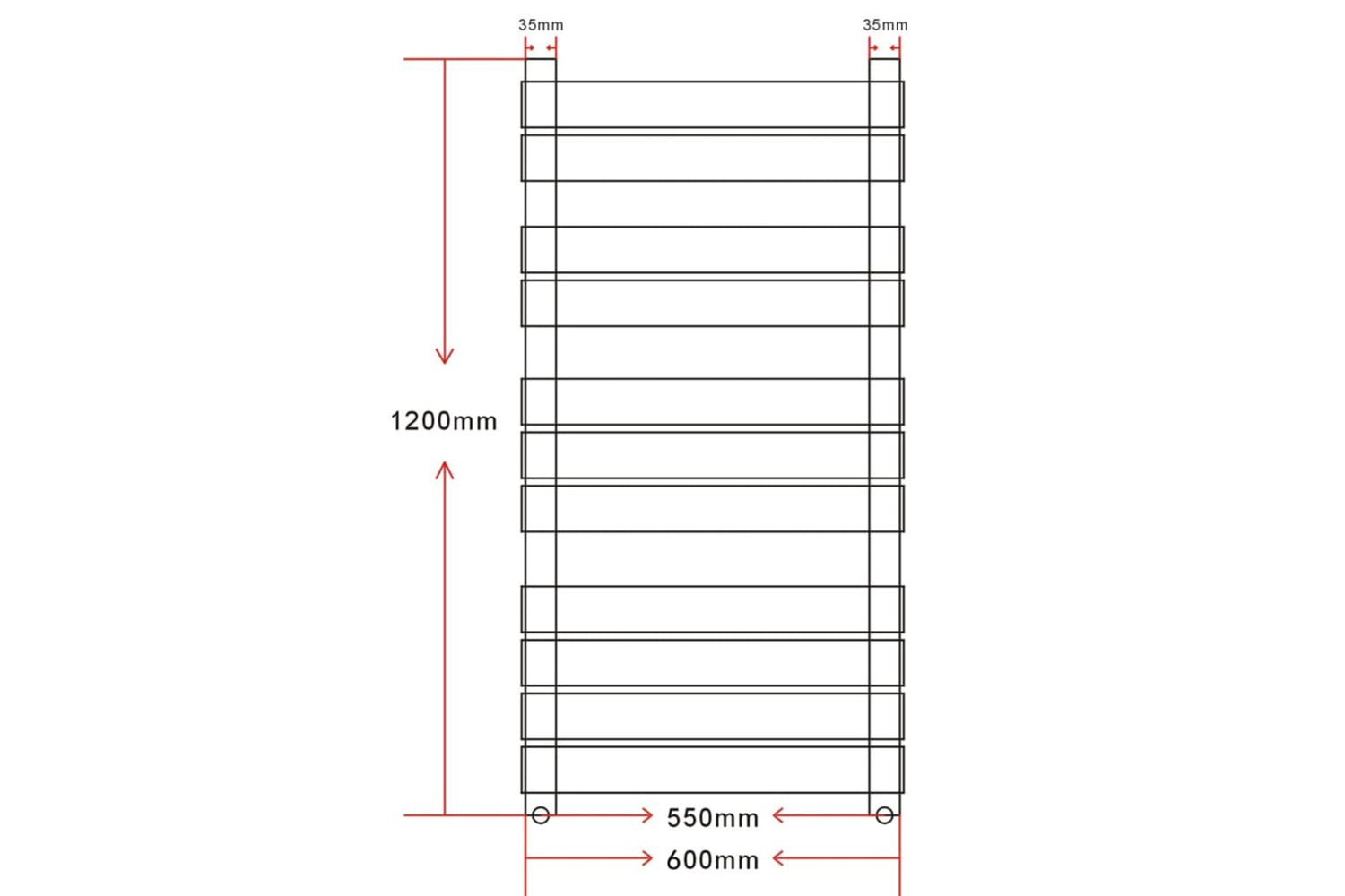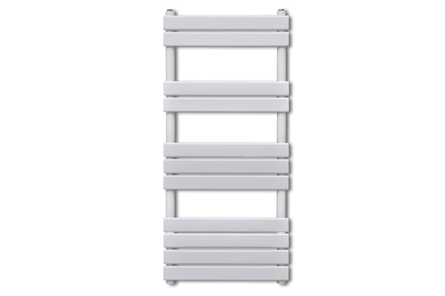 Thanks to the help of hot water circulation system, your towels will be dried in no time, which costs not electric bills. The towel warmer has 11 steel cross-bars of 60 mm in height and is painted in white. The cross-bars are extra-thick and subsequently produce a high heat output. The top and the bottom are both equipped with water inlets for an optimal water flow.