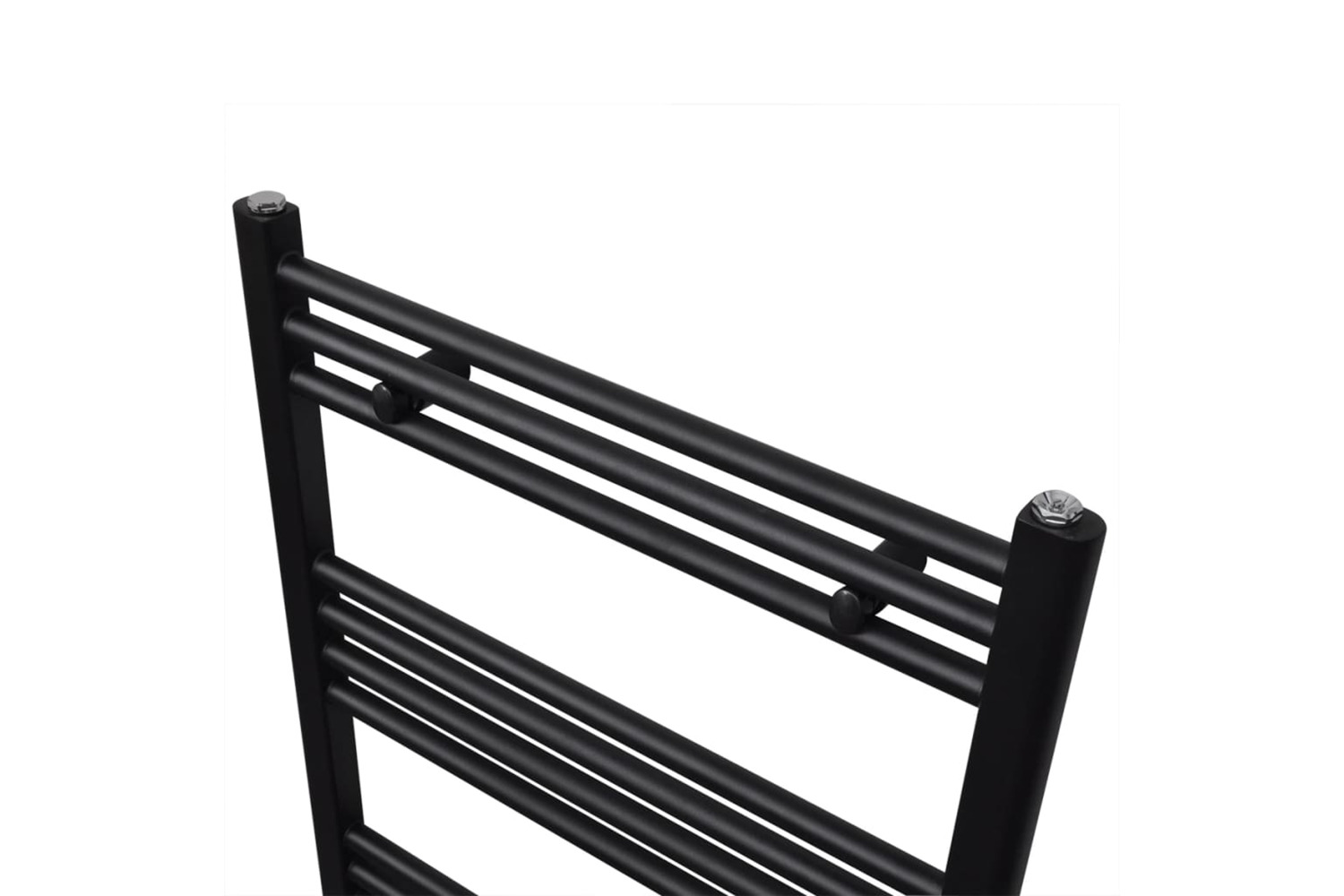 Thanks to the hot water circulation system, which doesn't use electricity, your towels will be dry in no time. The towel warmer has 18 steel cross bars of 22 mm in diameter and a black paint finish. The cross bars are extra-thick and subsequently have a higher heat output. The top and the bottom are both equipped with water inlets for an optimal water flow.