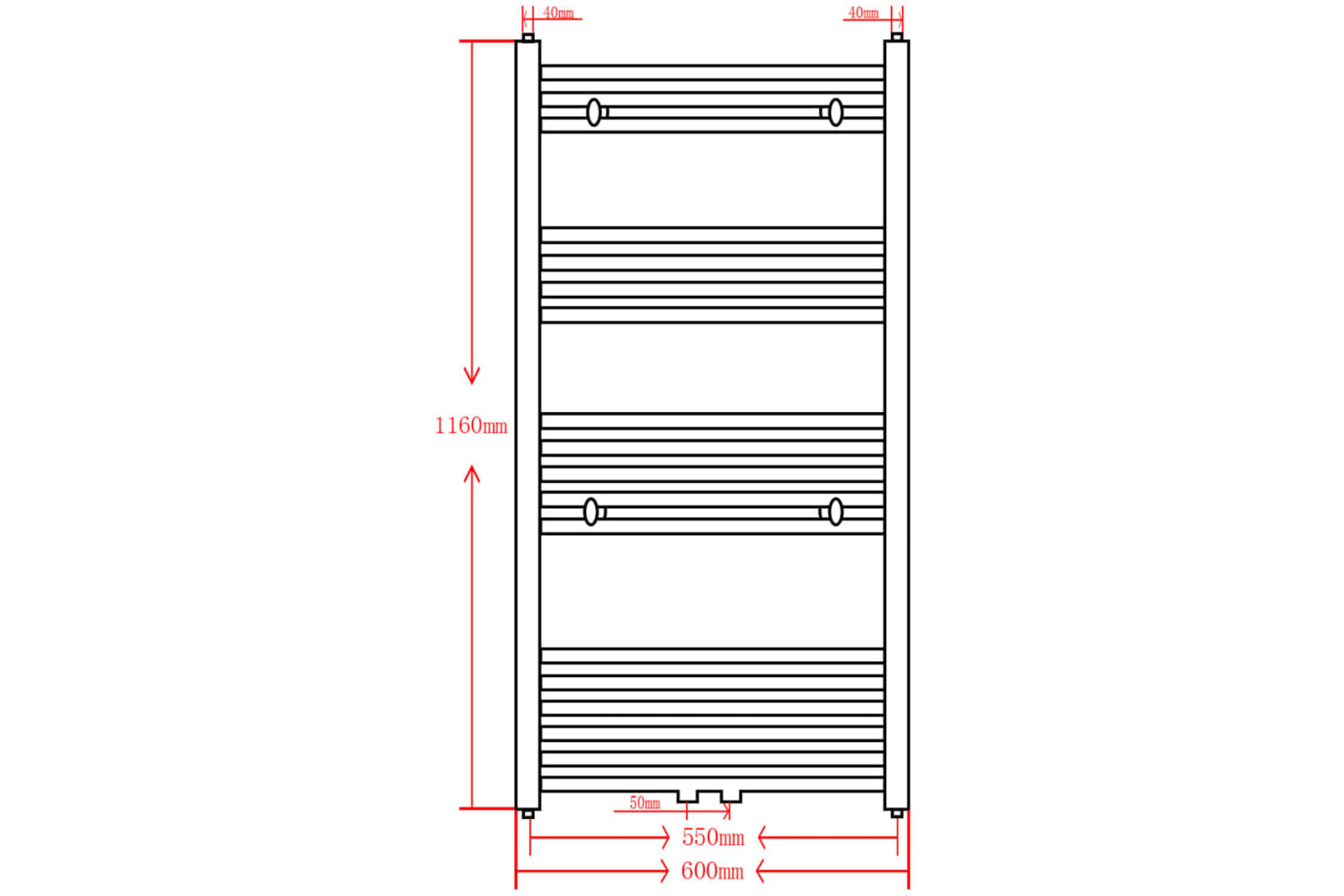 - Distance between pipe centres: 550 mm