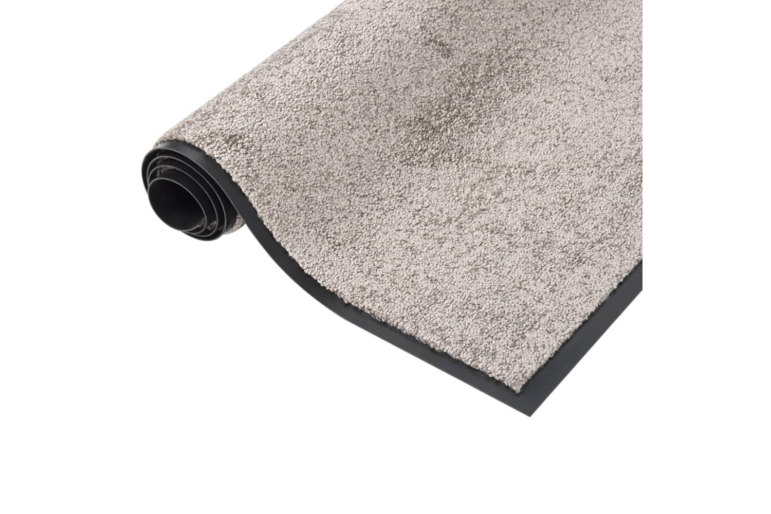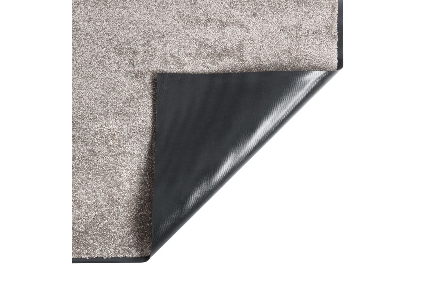 The front door mat is crafted from 100% polypropylene twisted heatset with velour surface, made to scrape dirt and debris directly off your shoes. A black border and the non-slip vinyl backing prevents moisture from leaking and keeps the mat in place. The overall neutral shade of the design lets it blend with a variety of decor styles.
