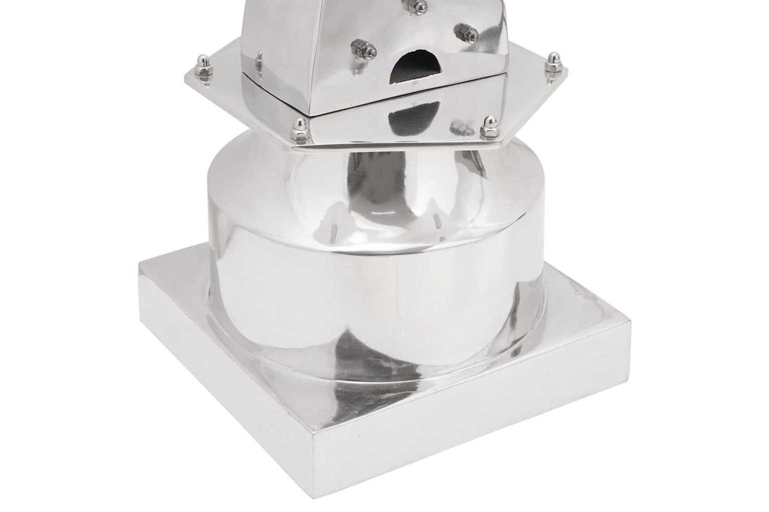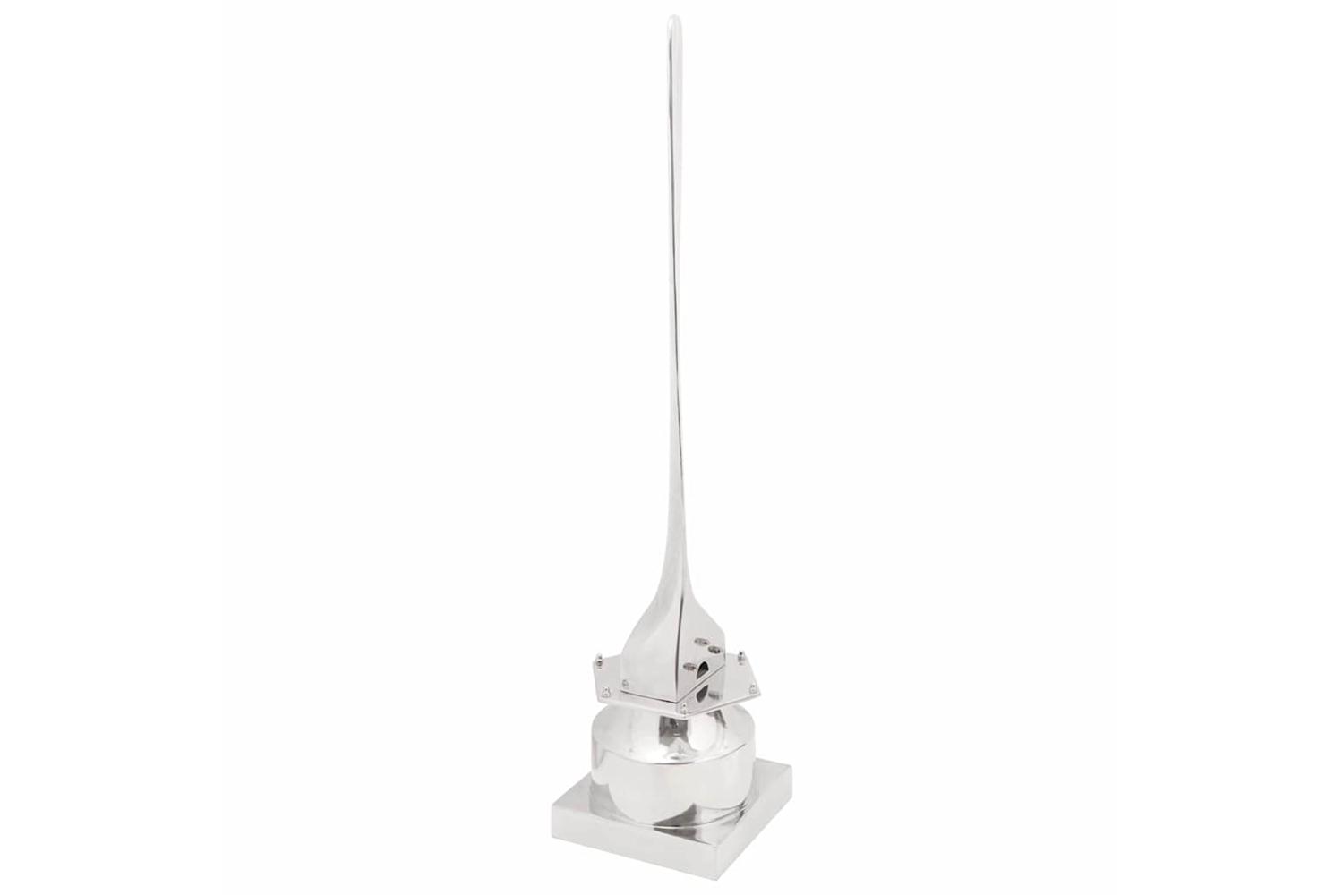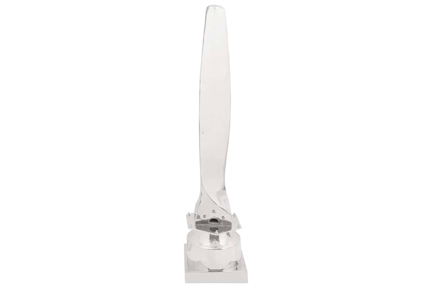 Experience art in a fresh way with this modern half propeller sculpture that mixes looks and purpose perfectly. Its polished silver sheen and high-gloss finish makes it the star piece that lifts any living room. The well-crafted shape captures movement and flow, showing innovation and creativity in a space that used to be all about simplicity.