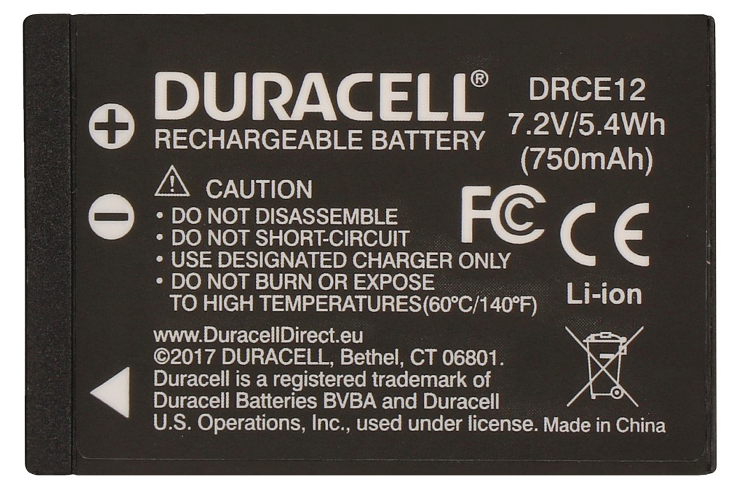 Duracell Digital Camera Battery 7.2V 750mAh is rated