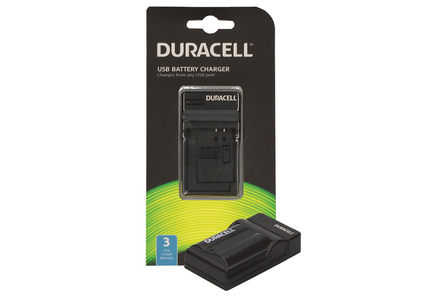 The Duracell USB camera battery charger is designed specifically for the Nikon EN-EL15 battery. The charger is extremely compact, light and convenient and connects to a USB socket for convenient charging anywhere in the world.