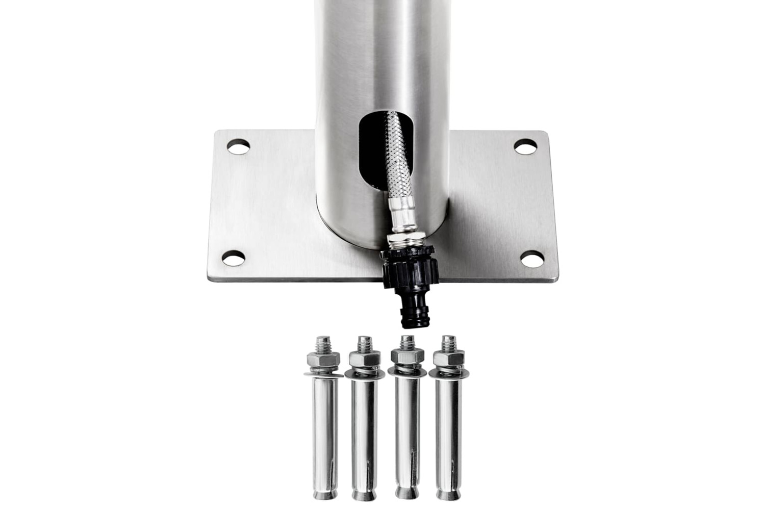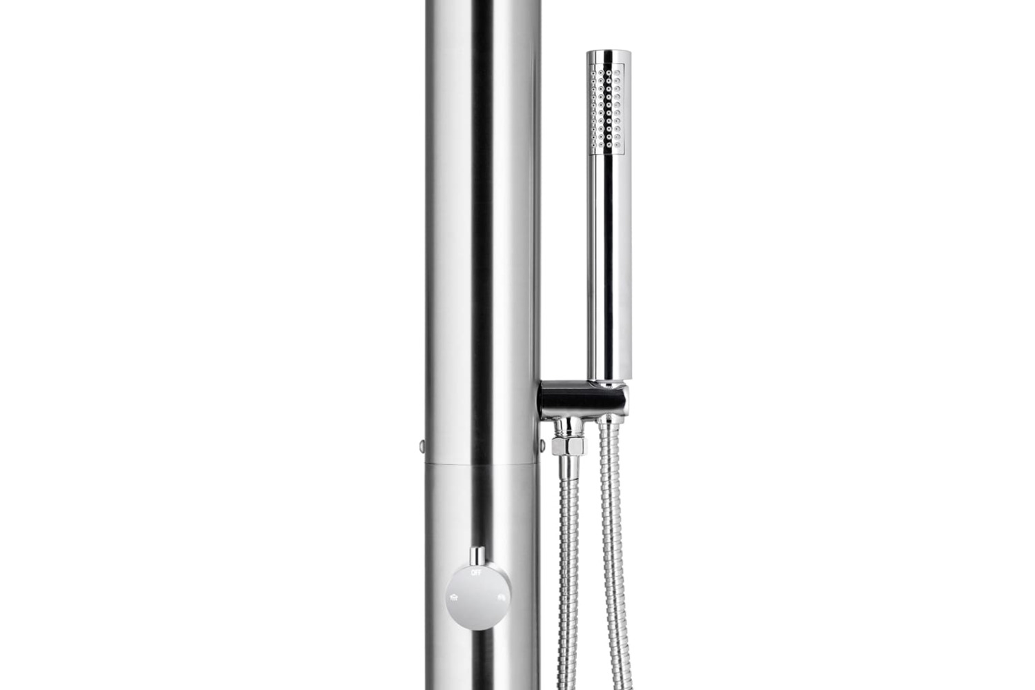 This outdoor shower is made of stainless steel, making it weather-resistance. The shower system has a waterfall head shower and a hand shower to meet your gardening, watering and quick showering needs. The hand shower features a double-locked flexible hose with a length of 1.5 m. It is also equipped with a brass hand shower holder.