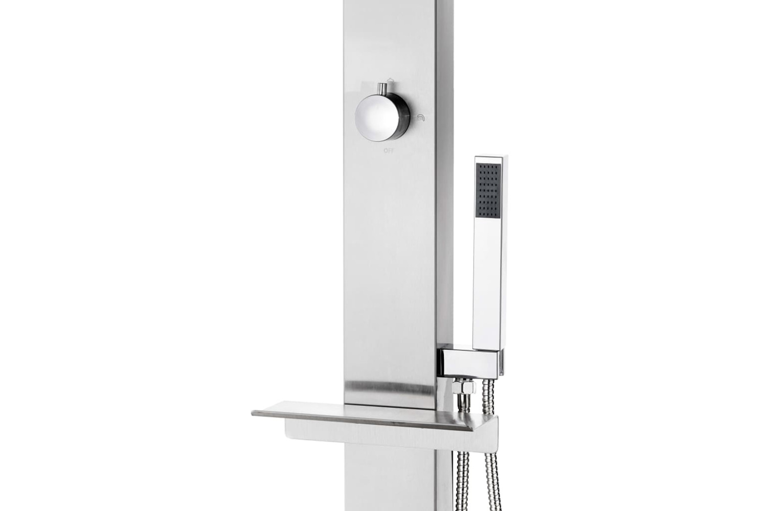 This outdoor shower is made of stainless steel, making it weather-resistance. The shower system has a head shower, a hand shower and a foot wash faucet to meet your gardening, watering and quick showering needs. The double-locked hose is flexible and designed for hand shower. It is also equipped with a plastic hand shower holder and a shelf for hanging up the water hose easily.