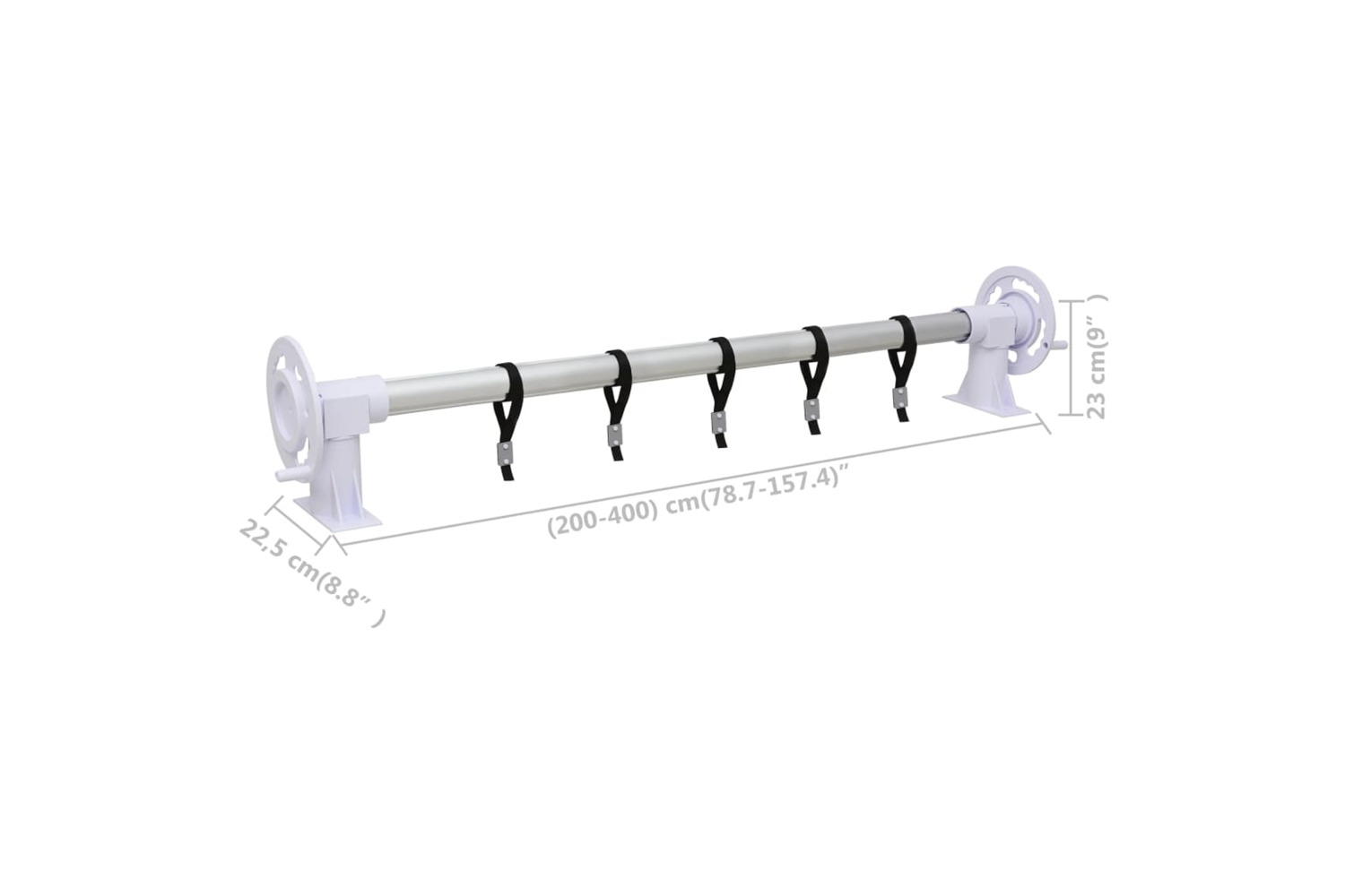 The roller features a slide adjustment mechanism and can easily be moved sideways to the correct position to suit the cover (suitable for covers with a minimum width of 2 m and maximum width of 5 m.) It is equipped with 2 wheels with hand knob for easy control. As the wheel crank is turned, the cover glides effortlessly onto the roller with the help of the included cords. The roller is made of corrosion- and weather-resistant aluminium, which is strong and highly durable.