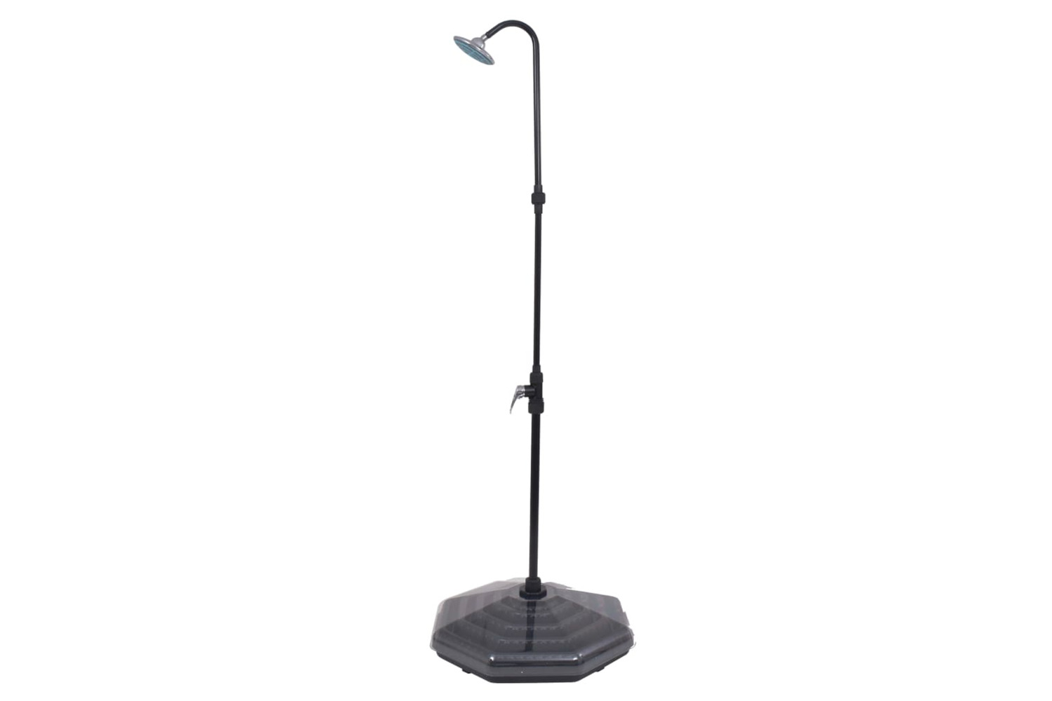- Material: Aluminium tube + high-density polyethylene (HDPE) base + ABS shower head