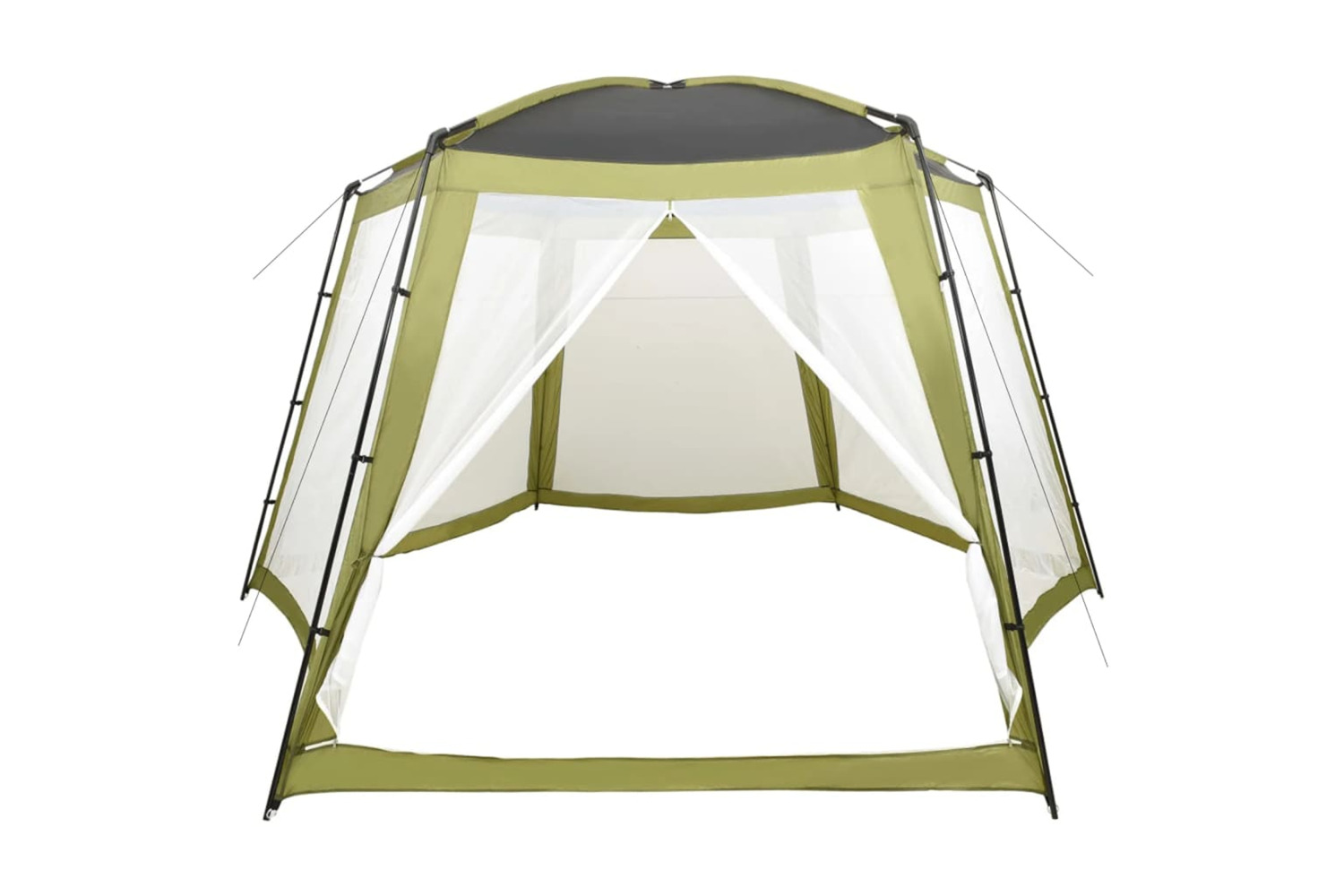 The party tent is made of polyester fabric with PA coating, enabling it UV resistant. With a strong steel frame, the event tent is sturdy and durable. Thanks to the mesh sidewalls, the sun shade is well ventilated. It is suitable for round pools with a maximum diameter of 300 cm.