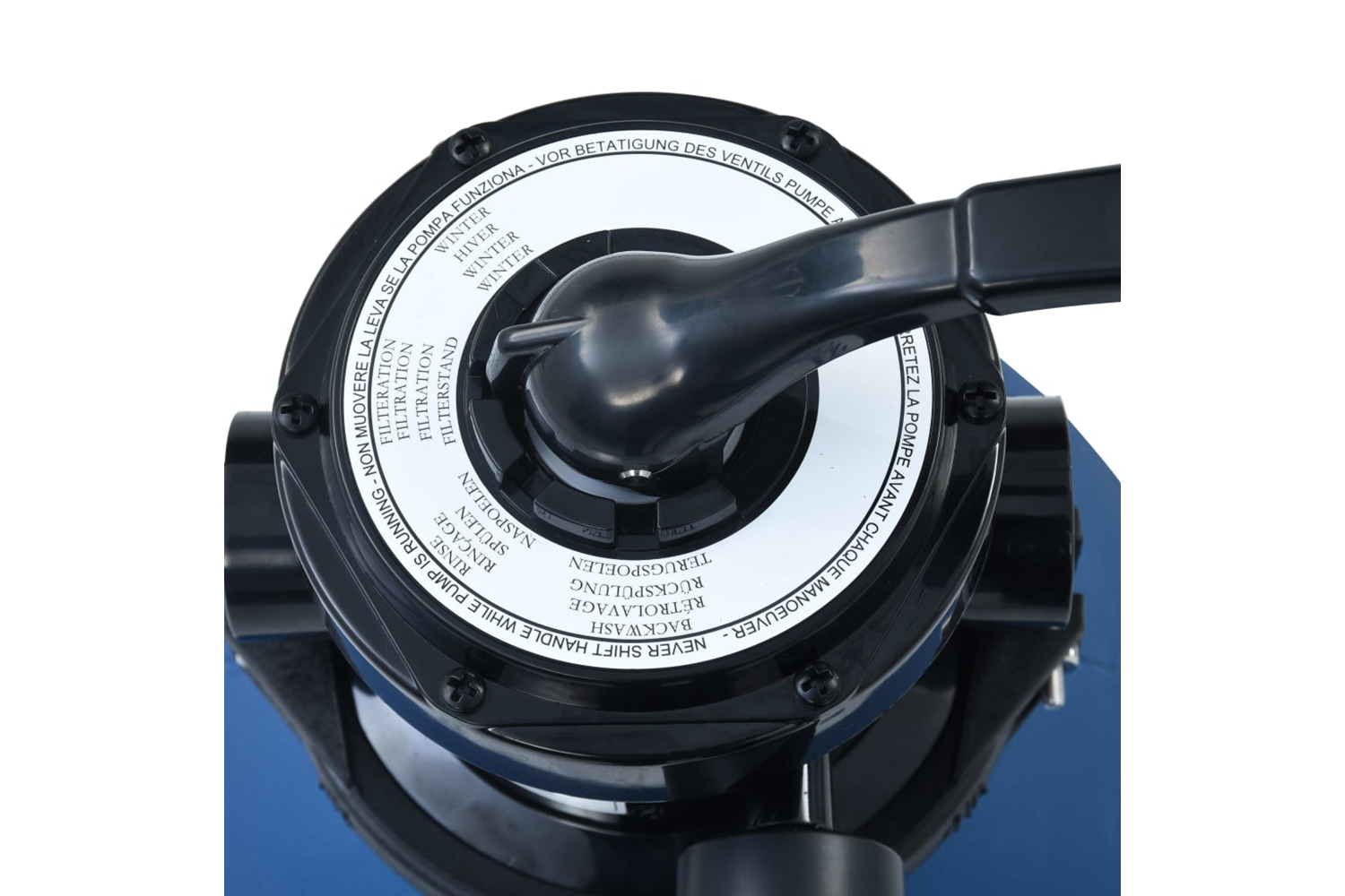 Made of high-density polyethylene, the sand filter is highly durable. This filter is designed to achieve a flow rate of 7 m?/h. The maximum working pressure is 3.5 bar. To start the operation, 19 kg of filter sand (not included) is required. The filter is equipped with a multiport valve with 4 positions: filter (for filtering the body of water), backwash (for cleaning the filter medium), rinse (for flushing the filter system), and winter (for winterizing).
