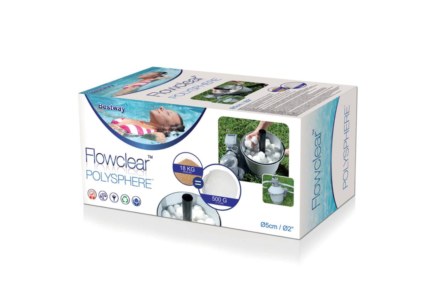 - 500 g of Flowclear Polysphere is equal to 18 kg of sand