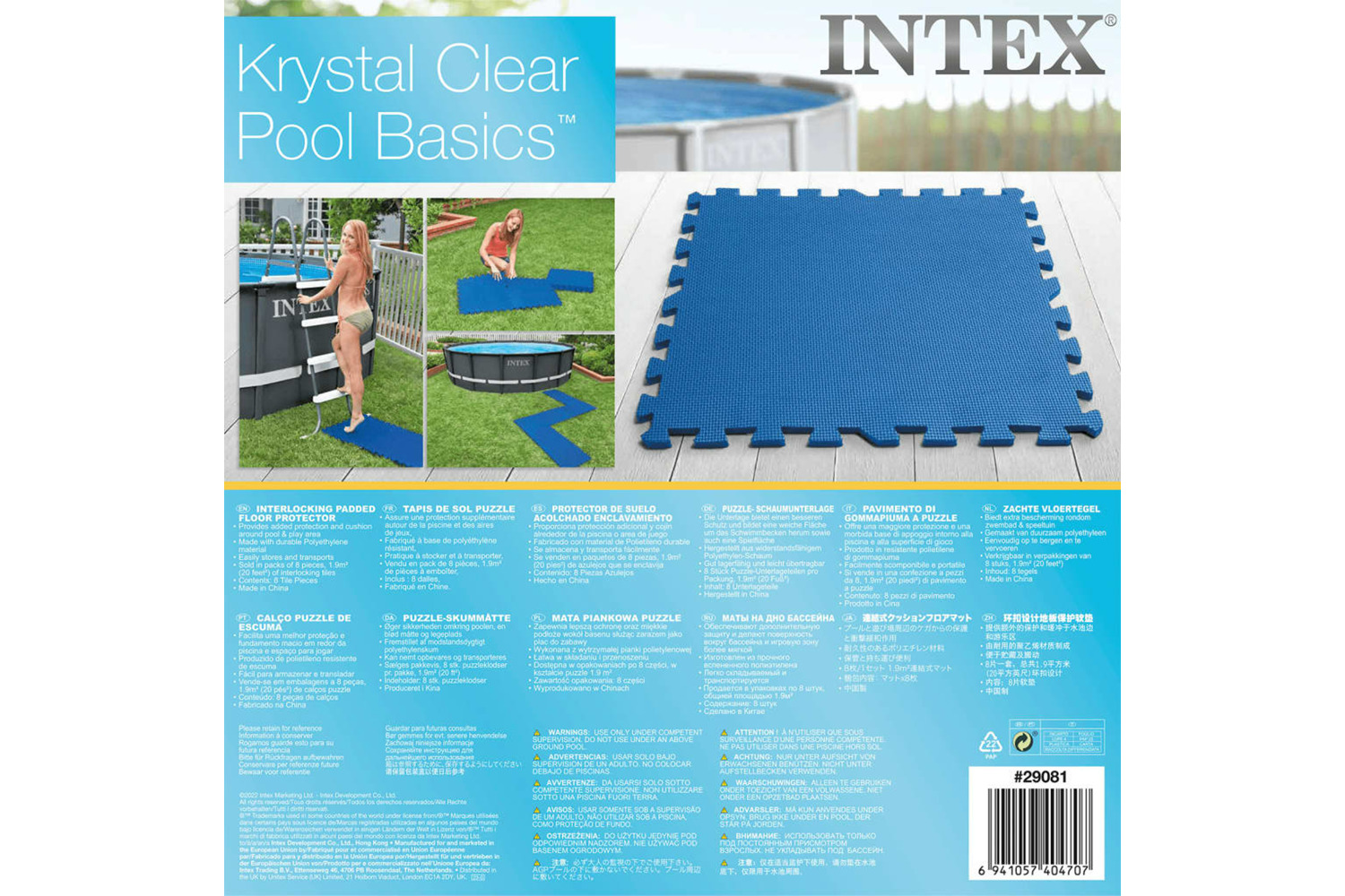 This Intex pool floor protector set, consisting of 8 interlocking polyethylene tiles, provides extra protection for the base of your pool, tent and spa as well as added insulation to help reduce the loss of heat.