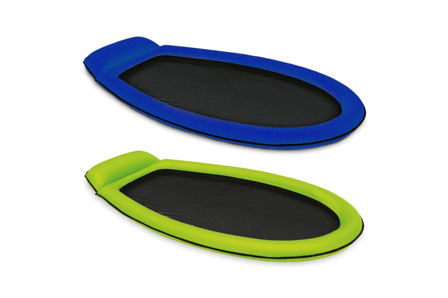 The inflatable, fabric-covered ring is designed for durability and comfort and also keeps you afloat. It has 2 air chambers and a built-in pillow. The mesh bottom keeps you cool while relaxing on the water.