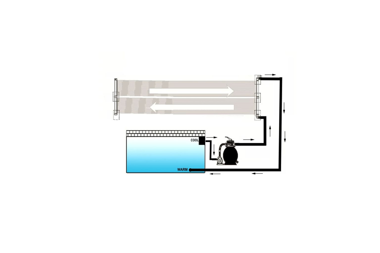 This solar pool heater collects the sun's rays, converts them to heat and keeps your pool comfortably warm. It increases pool water temperature up to 10 degrees. With the installation of this heater, the pool water circulates through solar channels and returns to your pool nice and warm.