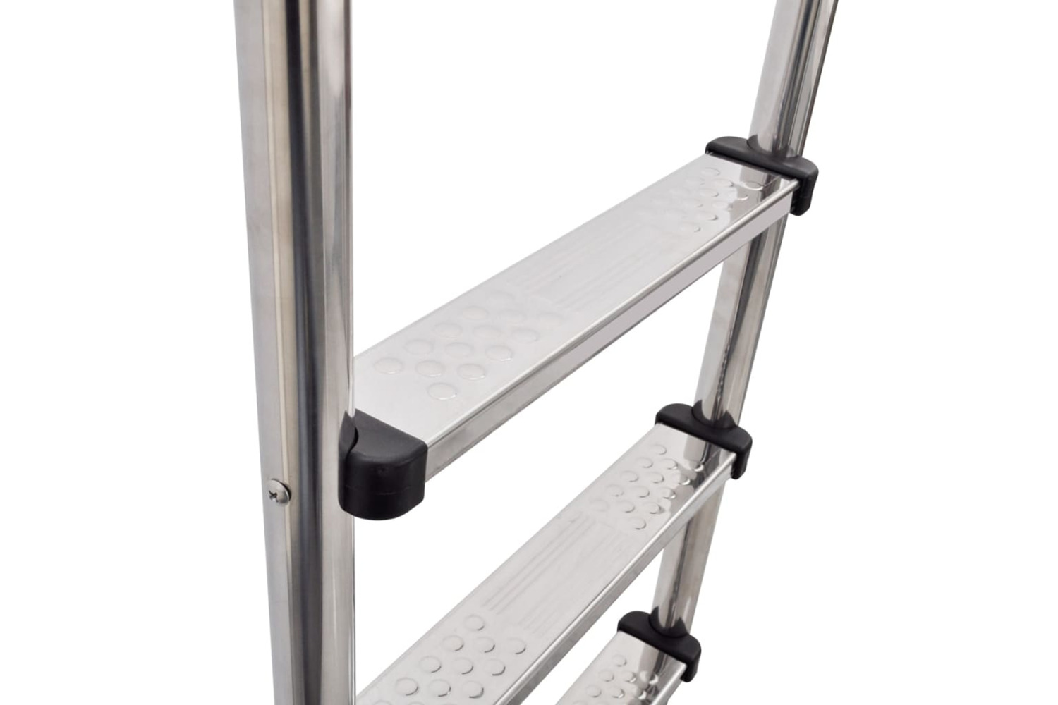 This pool ladder is made from super-strong stainless steel 304, thus it will never rust or corrode because of harsh pool chemicals. Three stairs with non-skid surface are firmly fastened to the steel poles, giving the swimmers a handy way to get in and out.
