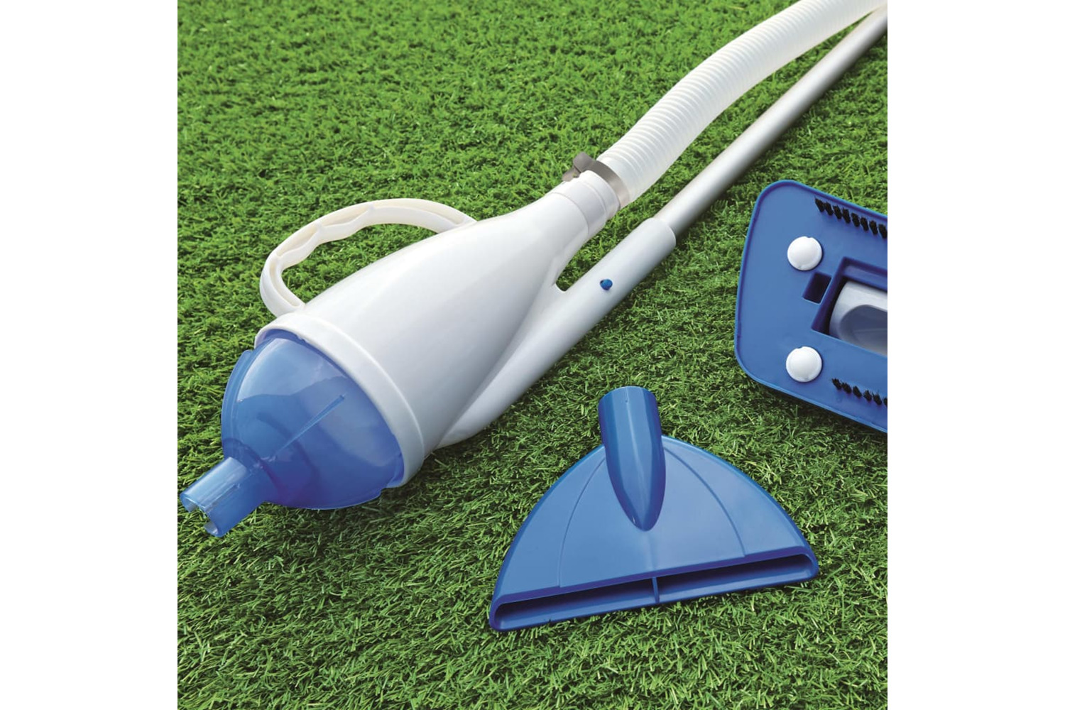 The Bestway AquaCrawl Pool Vacuum is simple to set up and easy to use. Just attach to your filter pump with 1 of the included adapters and start cleaning. Debris is sucked into a removable and reusable leaf bag. The vacuum set contains 4 lightweight aluminium poles which join together to create a 2,24 m long pole.