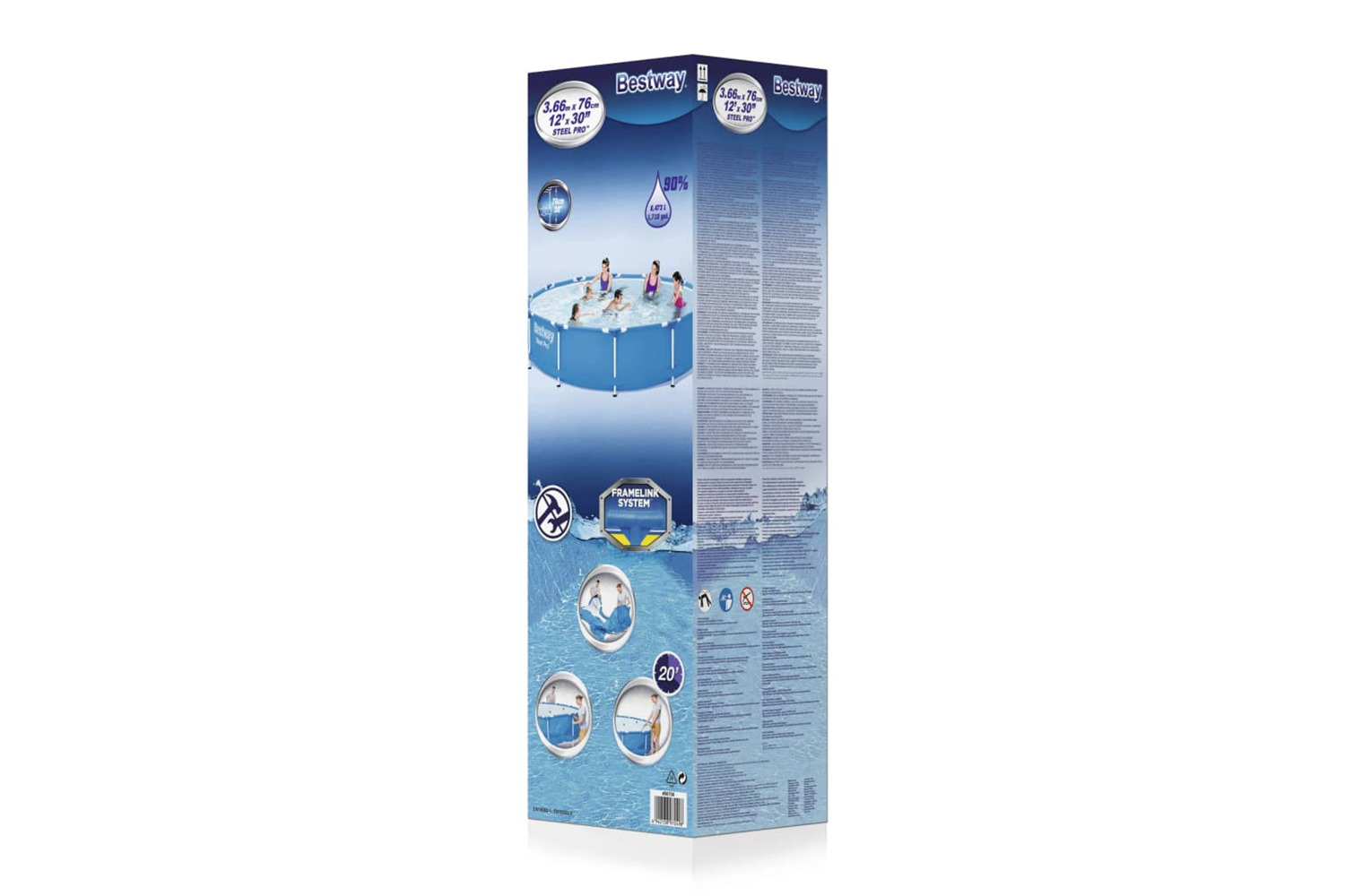 You will have loads of fun with family and friends in this Bestway swimming pool Steel Pro, of which the round shape provides more area for swimming and playing. This above-ground pool combines durability and style and the colourful animal printing will add energy and fun to your garden or backyard.