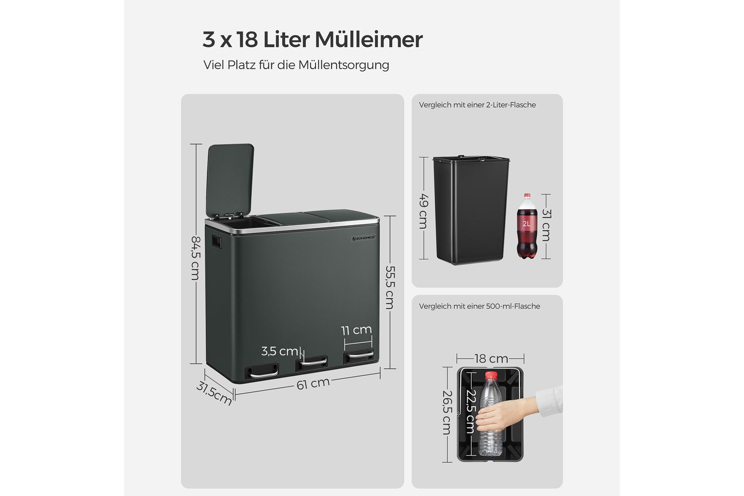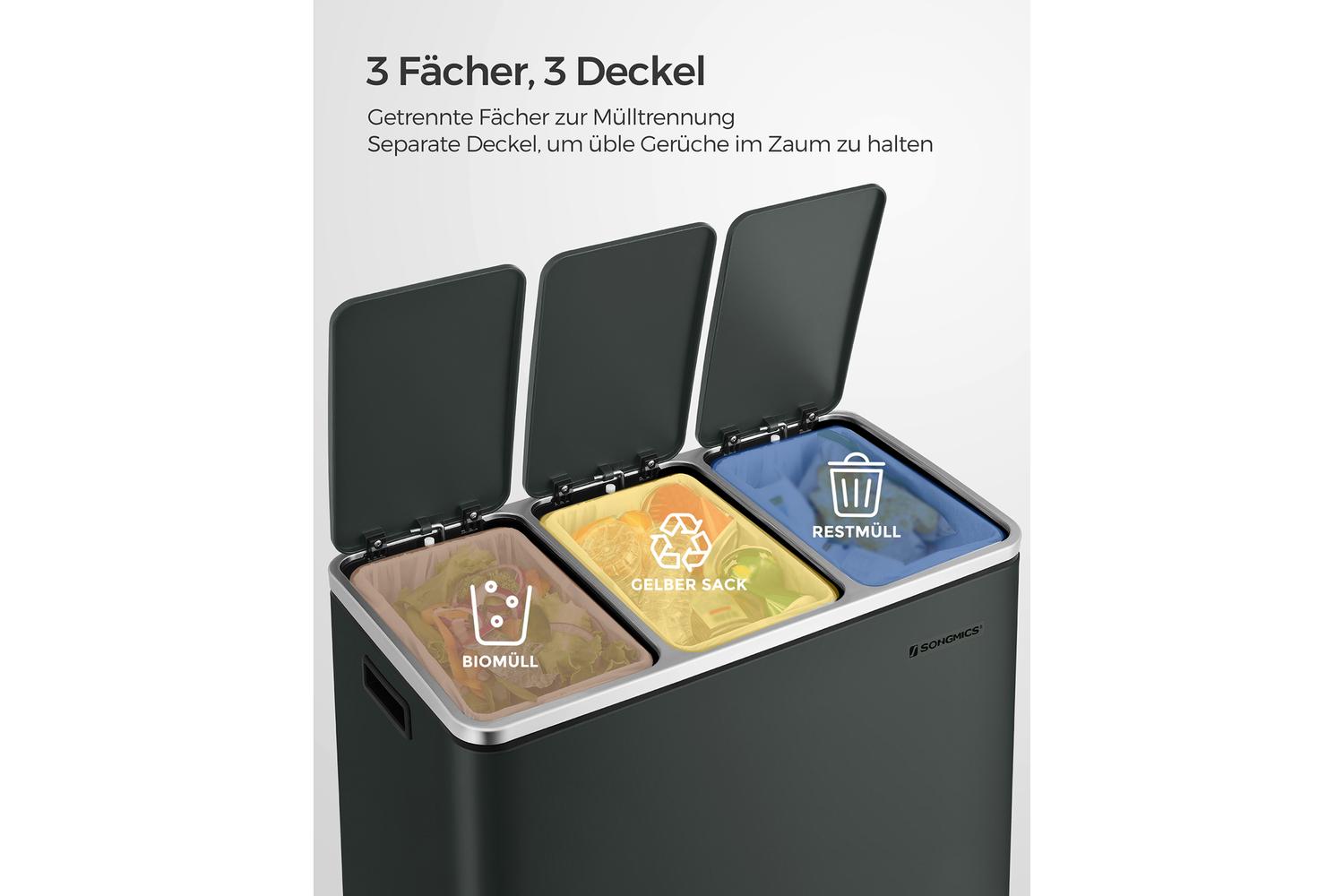 Upgrade your waste management with the SONGMICS Garbage Can, designed to blend seamlessly into modern Irish homes. This anthracite grey rubbish bin is more than just a bin – it is a statement of style, durability, and convenience. Whether you are looking to streamline your recycling or simply keep your kitchen, utility room, or office tidy, this robust bin delivers on all fronts.