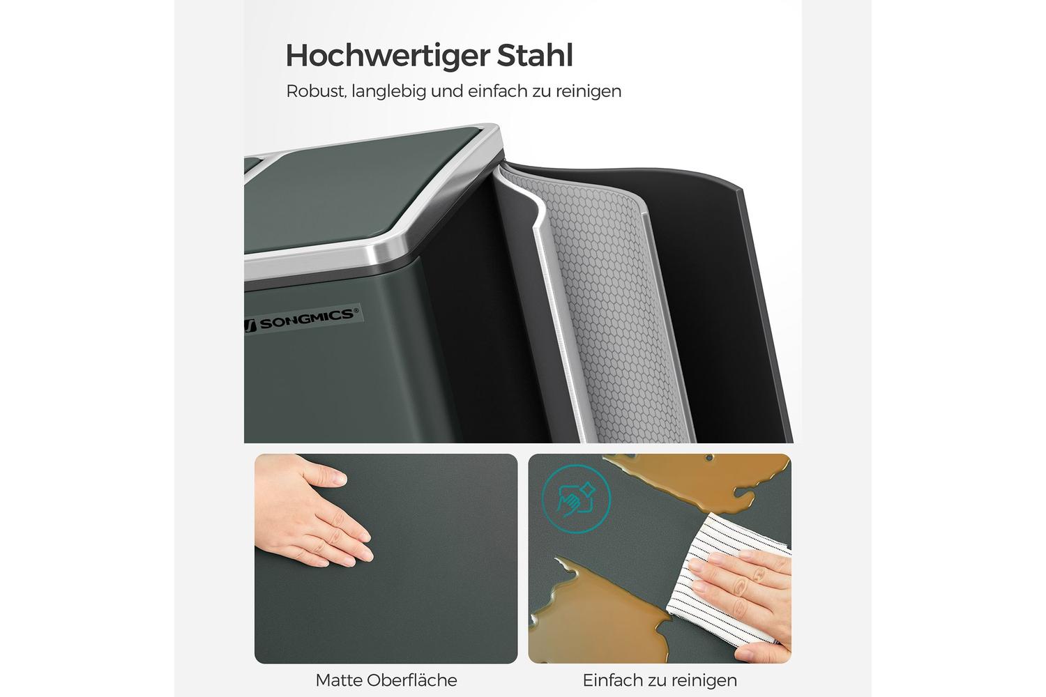 Designed with practicality in mind, the SONGMICS Garbage Can is easy to clean and maintain. The removable inner buckets make emptying and washing simple, while the robust steel exterior resists fingerprints and smudges, keeping your space looking fresh and tidy. Its 9.1 kg weight ensures stability, so you never have to worry about accidental tipping.