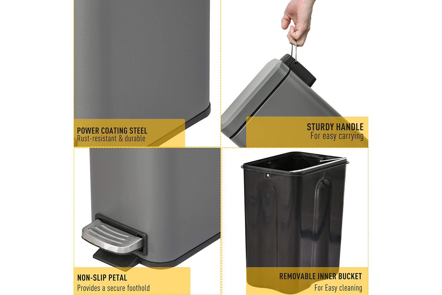 • Durable oversized pedal can open the can from basically any point