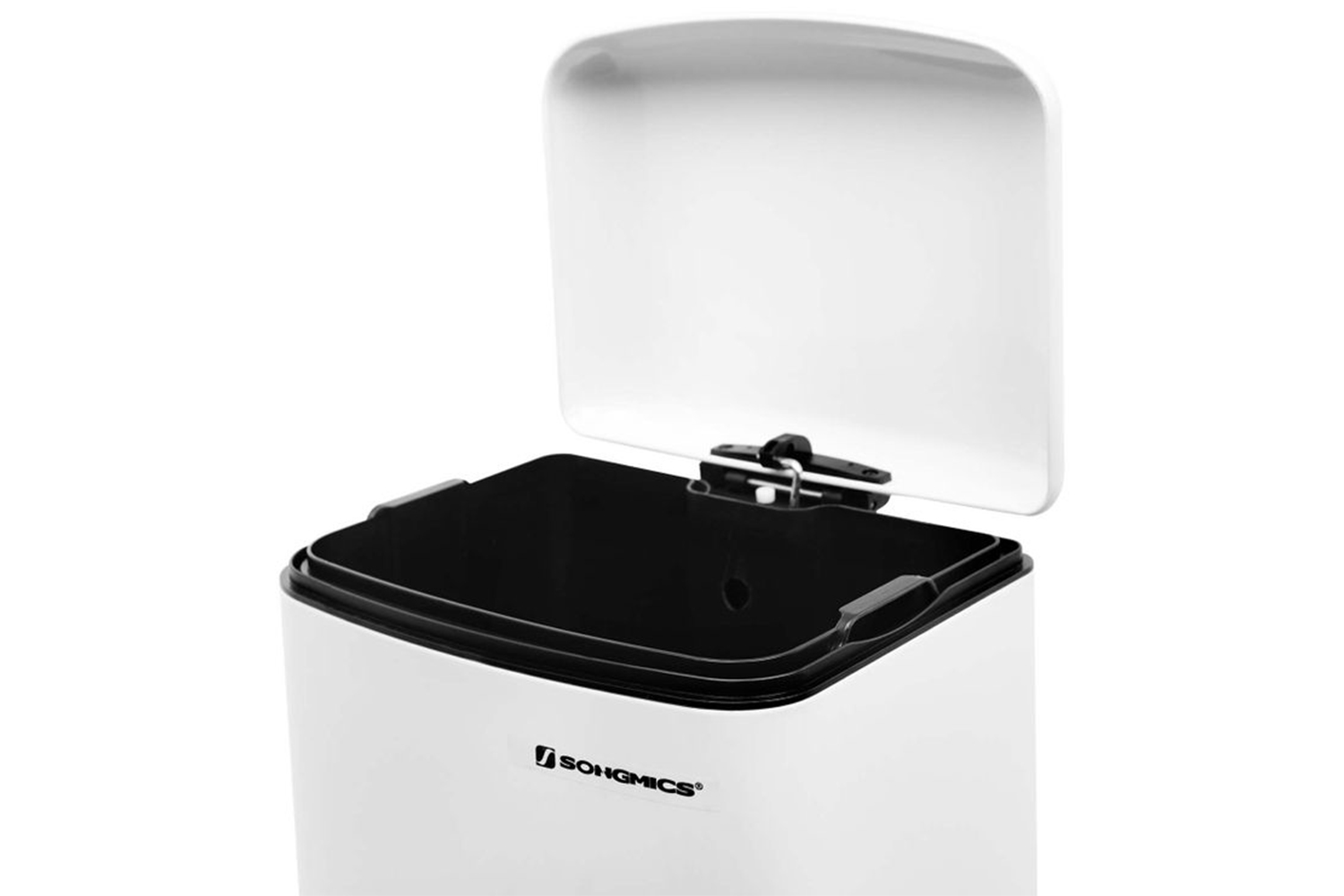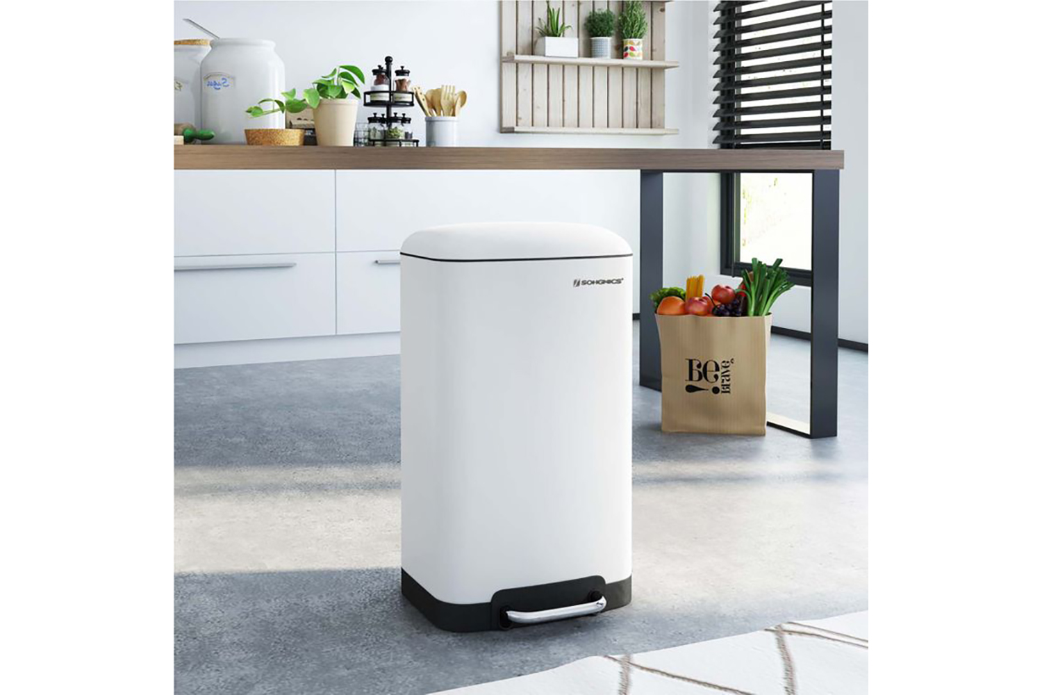 Songmics Trash Can with Lid, Waste Bin for Kitchen, 30 L White Pedal Bin with Soft-Close, Steel Waste Bin, Stainless Steel Pedal LTB01W.