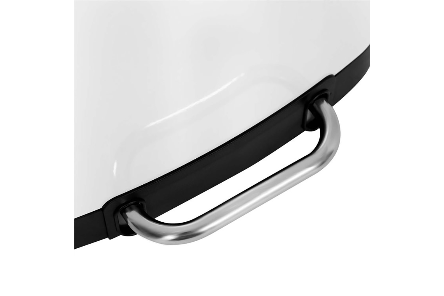 - Material: White powder-coated steel (housing) + plastic (inner bucket)