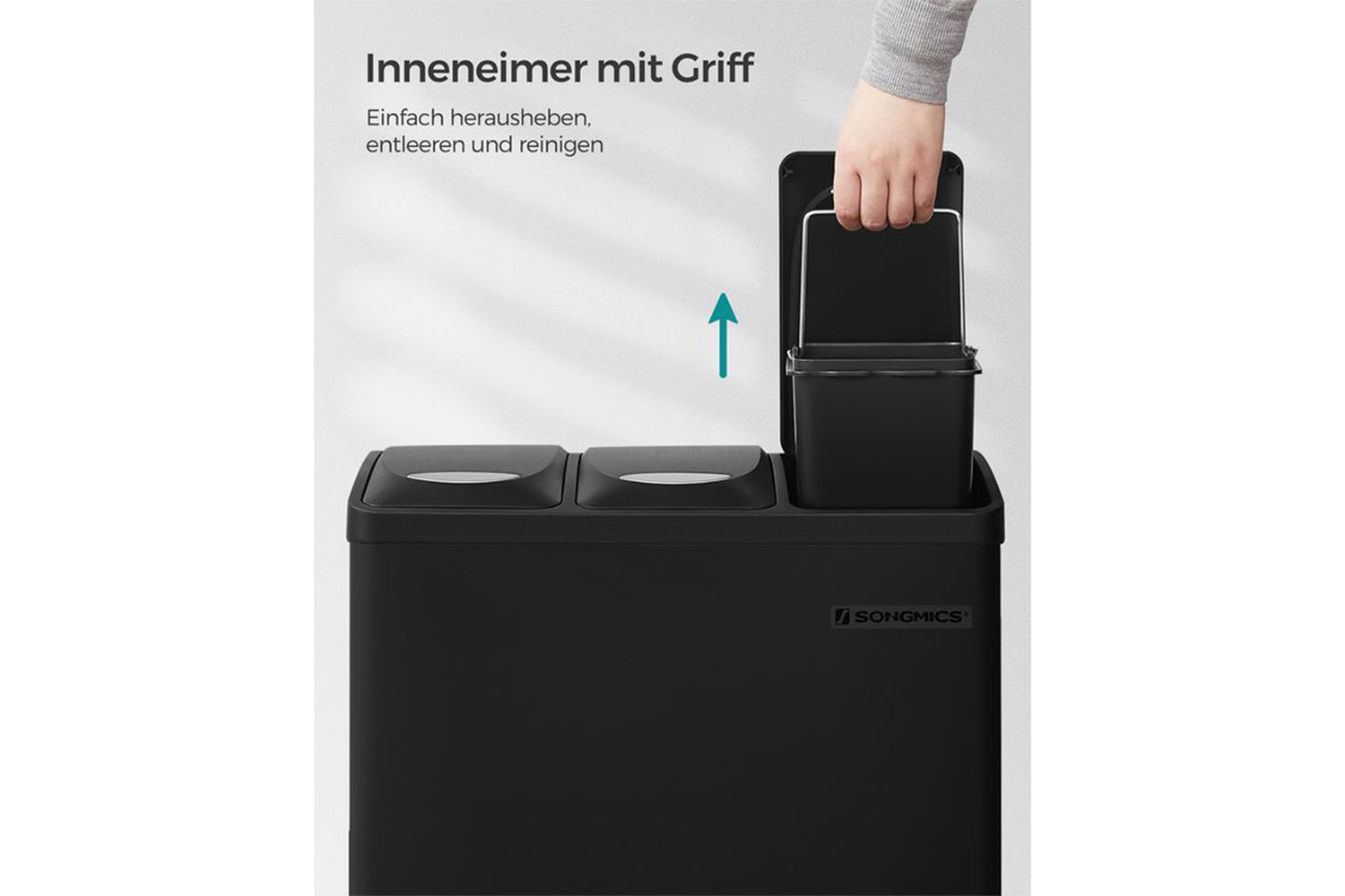 Oh, no! The garbage bag has already been torn open again and the garbage can is all sticky inside. Don't panic, each compartment of our waste bin is equipped with an inner bin. The inner bins can be easily lifted out of the waste container with a practical handle and emptied and cleaned without any problems.