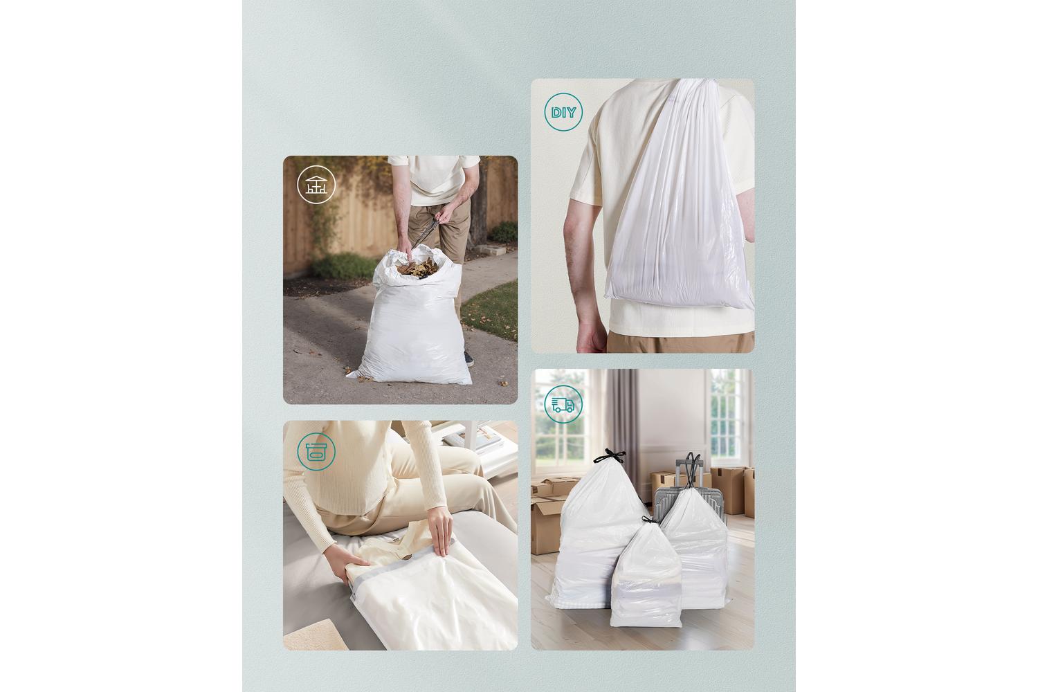 Say goodbye to messy spills and unpleasant odours. The SONGMICS Trash Bag is completely odourless and engineered to be tear-, leak-, and puncture-resistant, ensuring your waste stays securely contained. With a robust capacity of up to 10 kg, you can confidently dispose of kitchen scraps, recyclables, or even bulky items without worry. The drawstring closure makes sealing and lifting the bag a breeze, keeping your hands clean and your bin area tidy. Simply pull the drawstring to close and carry the bag to your outdoor bin—no fuss, no mess.