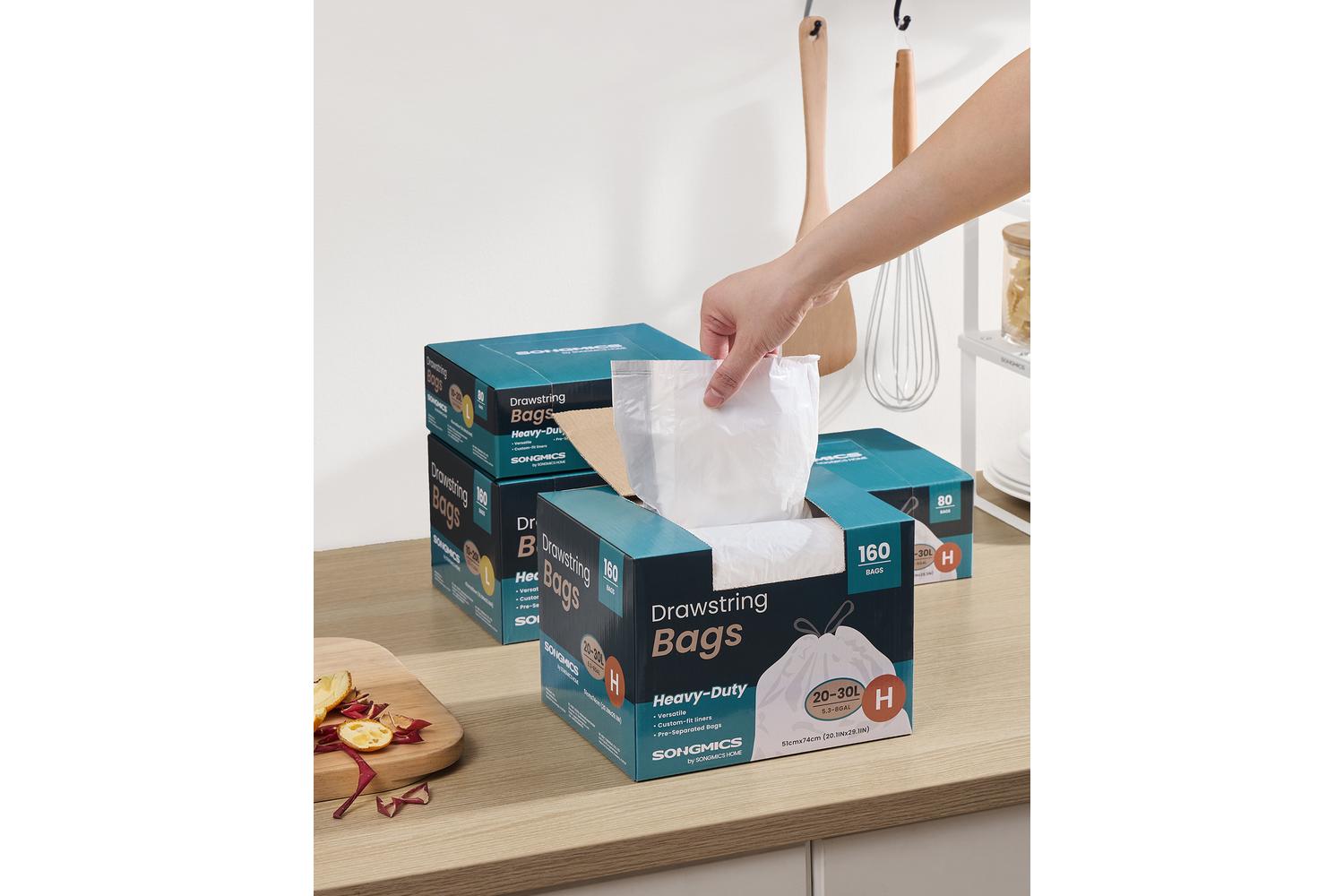 Designed for versatility, these rubbish bin liners are not just for waste. Use them for packing during a move, storing out-of-season clothes, or collecting garden clippings. The quick-release pull-out box means each bag is already separated, so you can grab one in seconds—ideal for busy households and workplaces across Ireland. Each pack includes four rolls of forty bags, perfectly sized to fit SONGMICS bins up to 30 litres, ensuring you always have a liner ready when you need it.