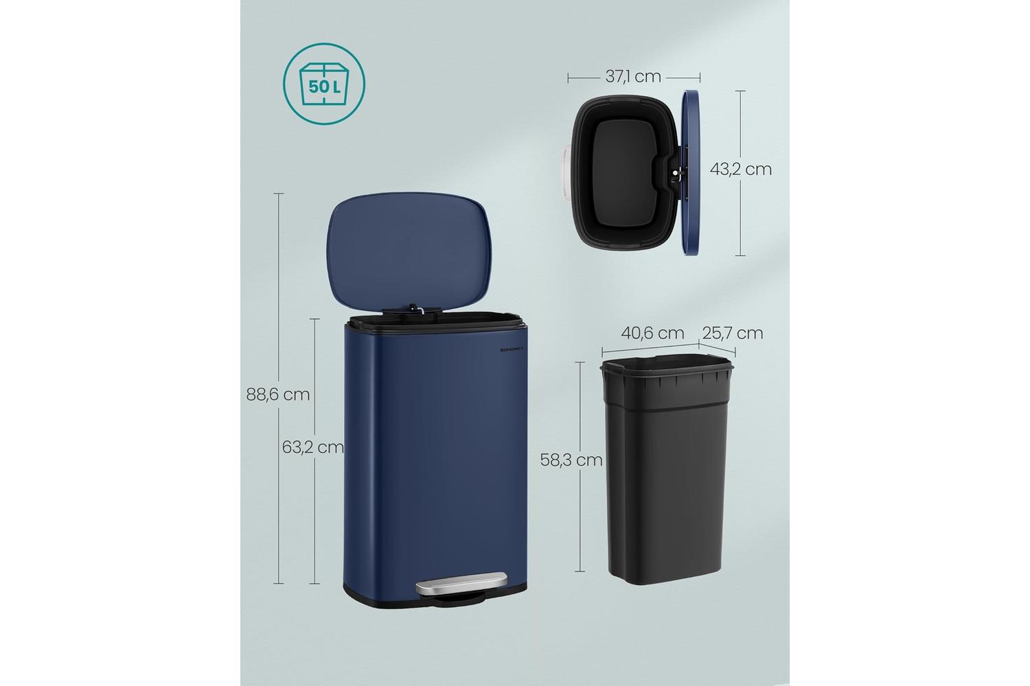 - 1 x SONGMICS 50L Steel Pedal Bin