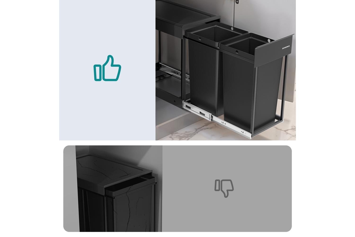 Transform your kitchen with the SONGMICS Pull Out Kitchen Bin, the perfect solution for efficient waste management and recycling in Irish homes. Designed to fit seamlessly inside your cupboard, this built-in rubbish bin keeps your kitchen tidy, traps unpleasant odours, and maximises your space. Whether you are looking to streamline your recycling routine or simply want a discreet waste disposal option, this double compartment bin is a must-have for modern kitchens across Ireland.