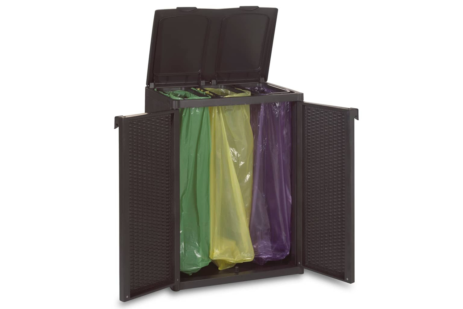 Made of 100% PP (polypropylene), the ecologic cabinet is durable and easy to clean with a damp cloth. Thanks to the lightweight construction, it is easy to move. Additionally, with 3 holes for bag holders, this recycling container allows for functional waste separation.