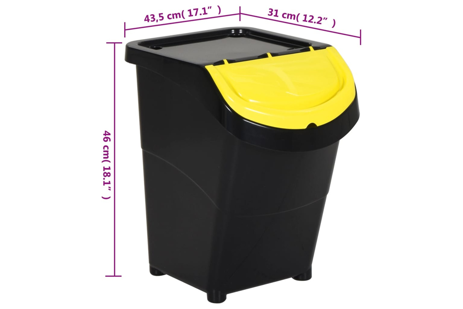 - Practical material: The recycling bin is made of polypropylene. Polypropylene (PP) is a popular plastic that is also one of the most used materials in outdoor furniture. It's lightweight, tough, and resistant to impact.