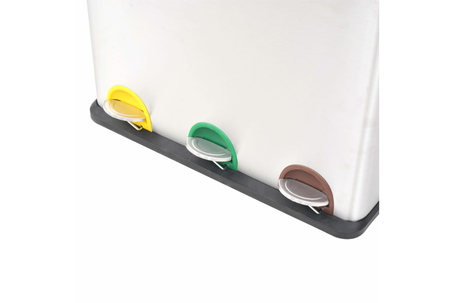 You can effortlessly open or close the lids by pressing the pedals. The slots behind the pedals are colour-coded, which helps you to sort the trash more conveniently. The recycling bin has a stainless steel housing with a matte finish, which gives it a chic look. The inner buckets, lids and base are made of durable polypropylene (PP). The soft-close lids open/close quietly. When closed, the lids will prevent odours from spreading. Each inner bucket has a large handle and can be easily removed.