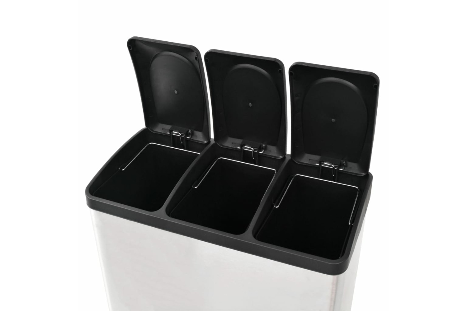 This chic, practical recycling pedal bin with soft-close lids is a must-have for your kitchen, living room, office, etc. The rubbish bin is equipped with 3 removable inner buckets for sorting the waste.