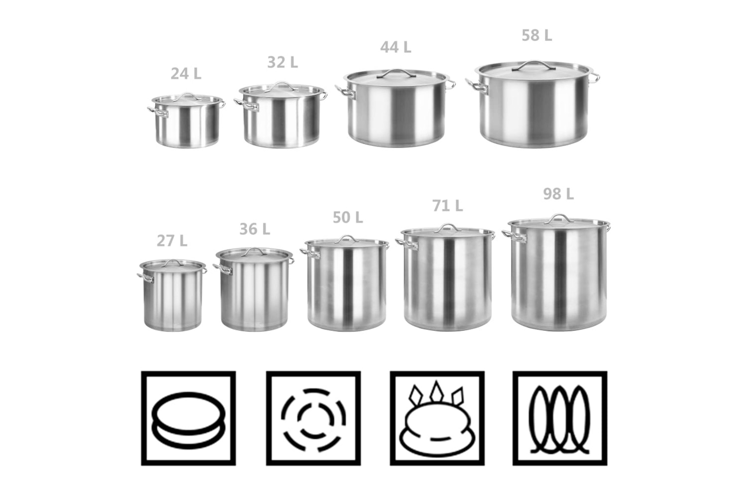 Great for soups, stews and sauces, this catering pot can deal with lots of kitchen works. The premium stainless steel material makes it suitable for induction and gas stoves. Additionally, its rolled edge and handles can avoid unexpected heating hurt.