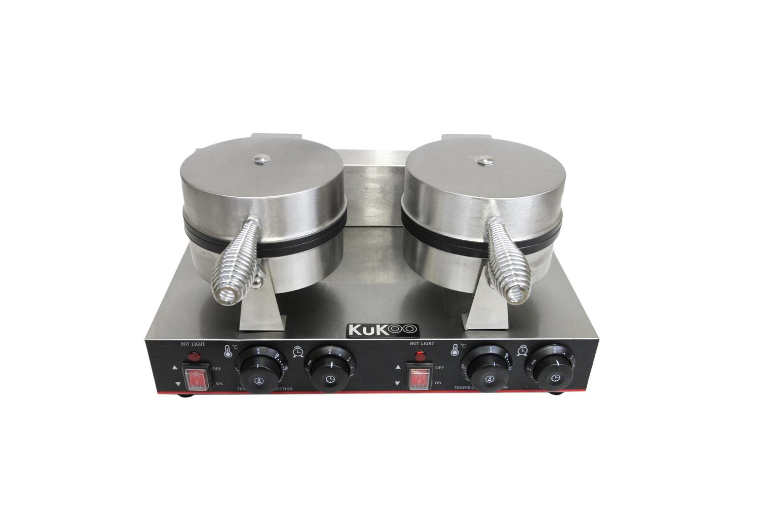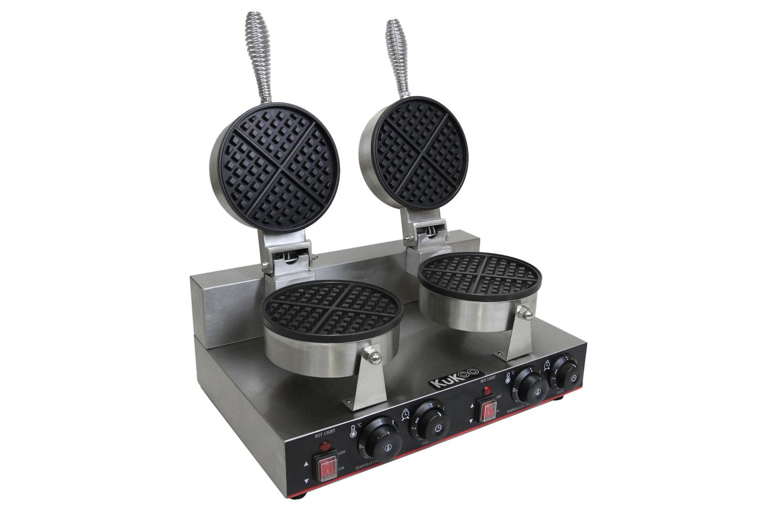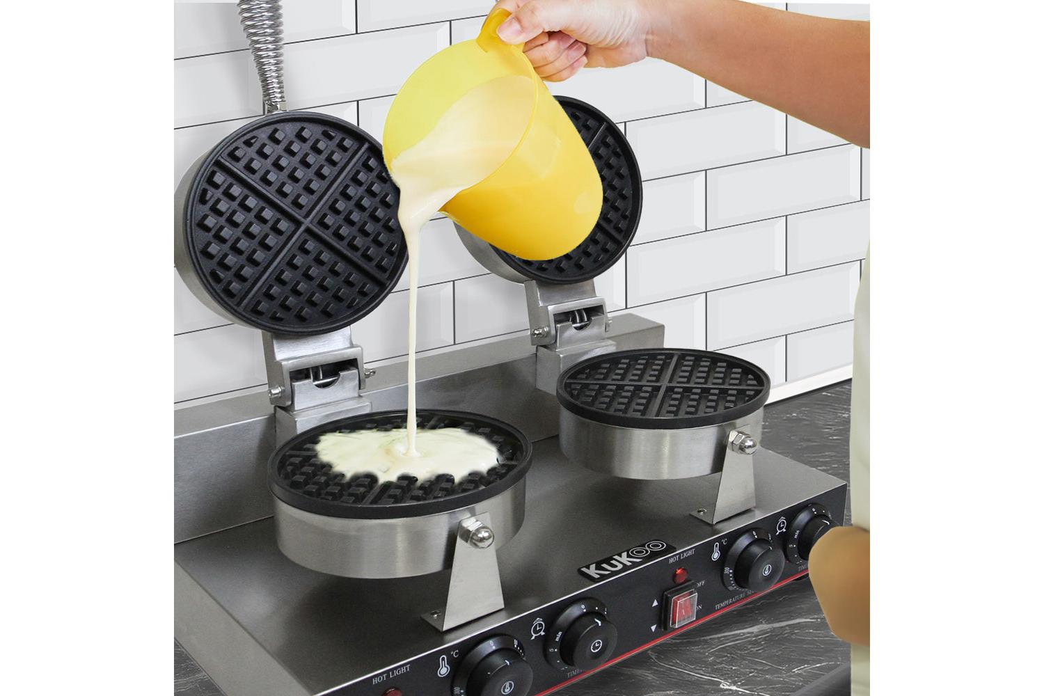 The MONSTERSHOP 24318 - KuKoo Double Waffle Maker, an expertly designed culinary tool, will elevate your kitchen experience. Whether you own a bustling cafe, hotel, mobile catering unit, or merely want to pamper your loved ones at home, this state-of-the-art, double waffle maker tailors a mouth-watering treat in a breeze.