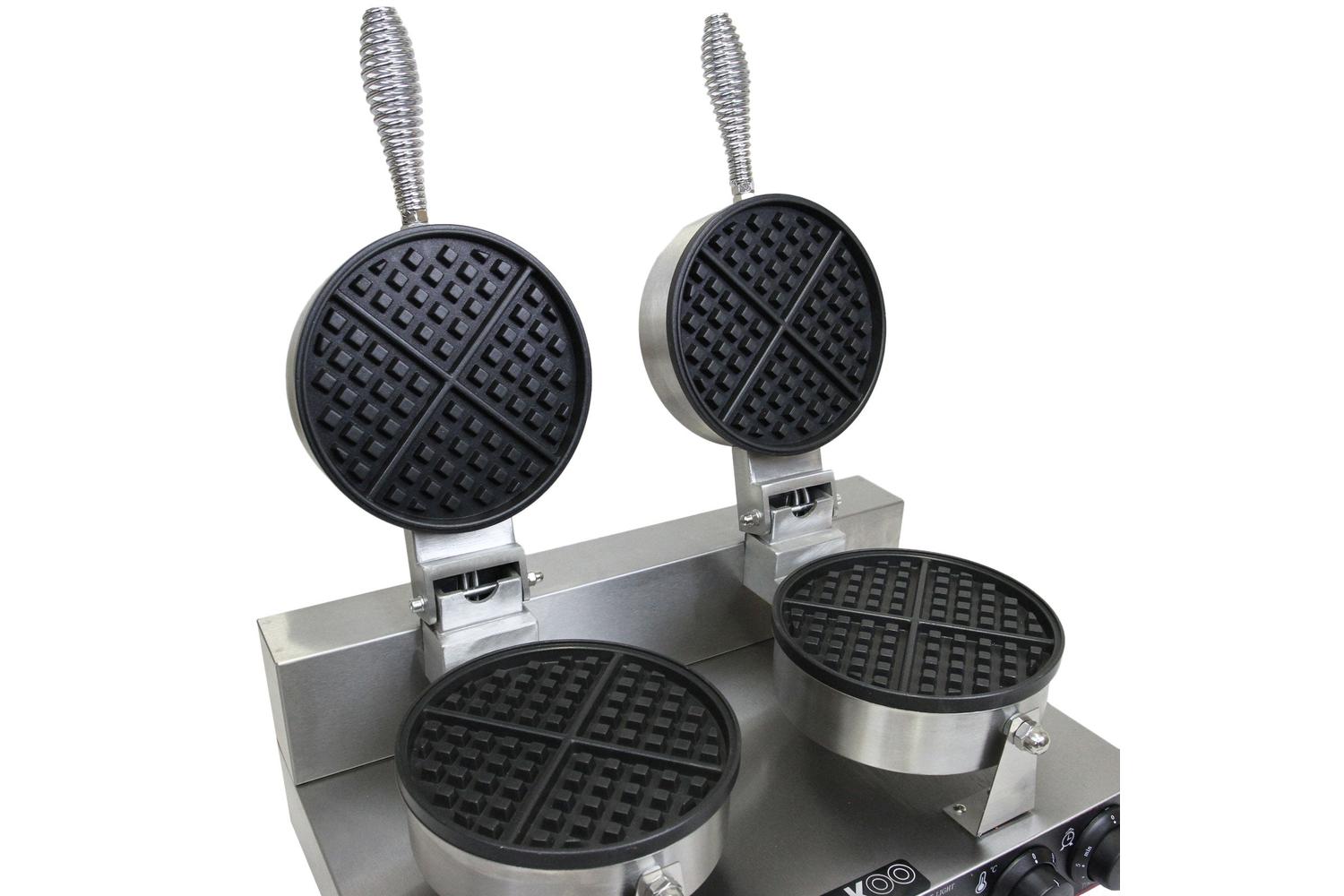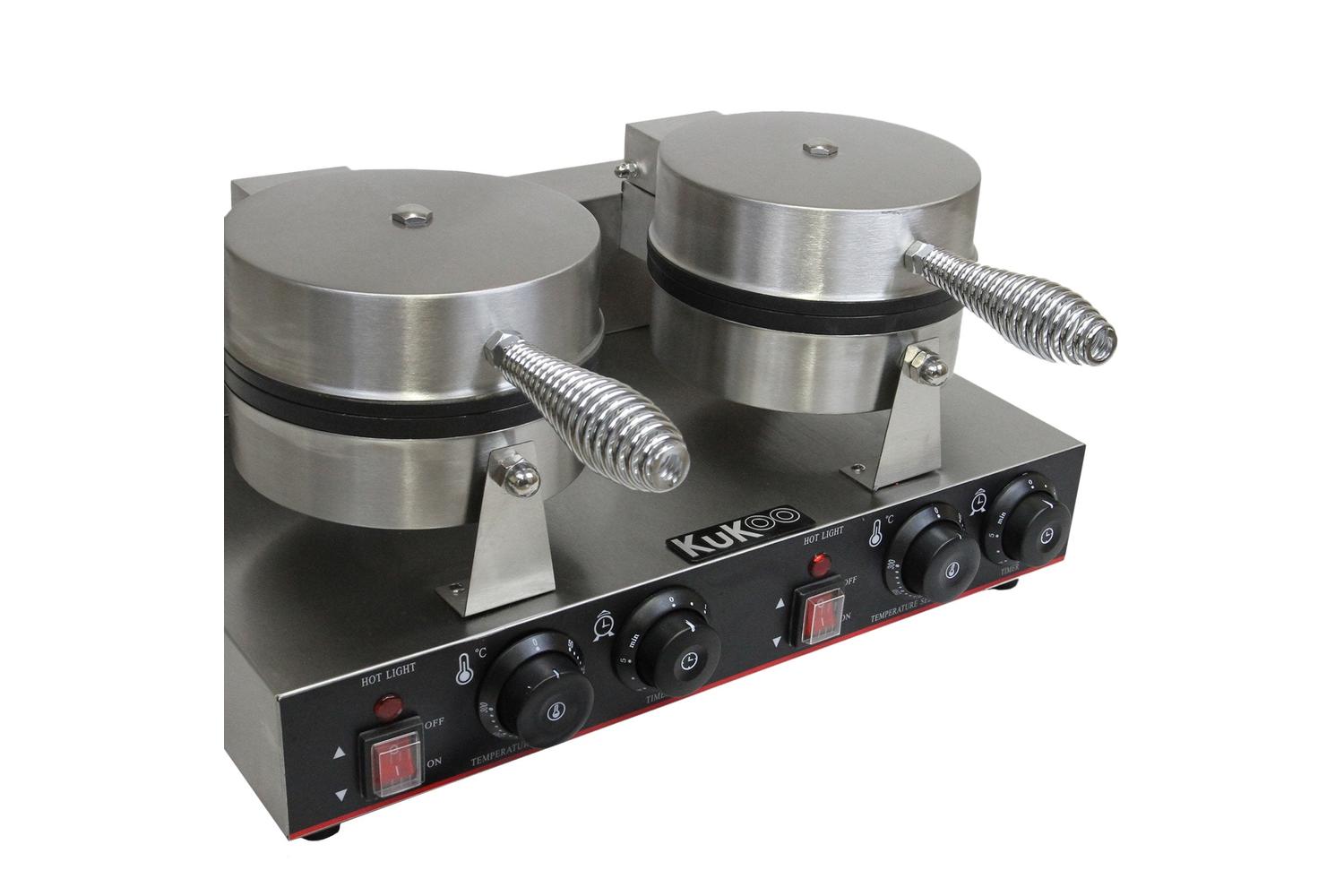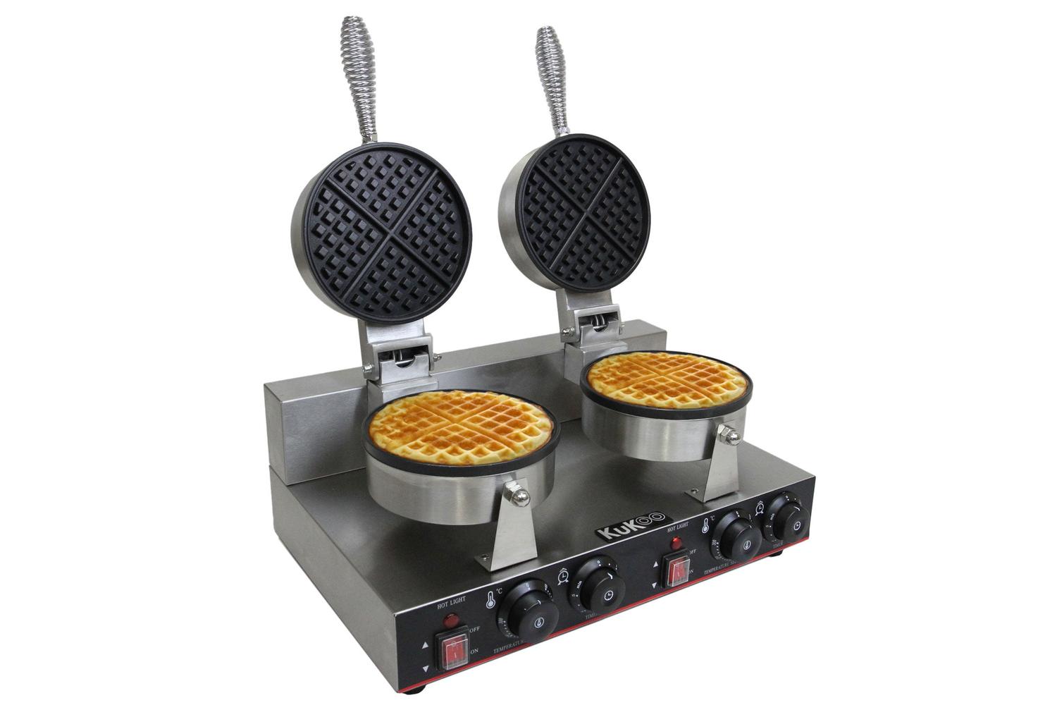 The MONSTERSHOP 24318 - KuKoo Double Waffle Maker, an expertly designed culinary tool, will elevate your kitchen experience. Whether you own a bustling cafe, hotel, mobile catering unit, or merely want to pamper your loved ones at home, this state-of-the-art, double waffle maker tailors a mouth-watering treat in a breeze.