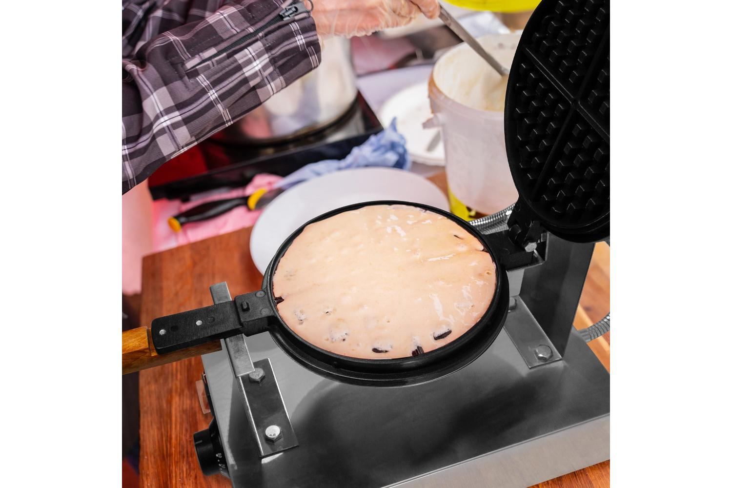 Featuring an auto temperature function ranging from 50°C to 250°C, this waffle maker empowers you with full control over your waffle's crispiness. Whether you seek consistency or variety in your waffles, the machine's rotating mechanism ensures even batter distribution on the plates, resulting in perfectly uniform waffles that are light inside while crisp on the outside.